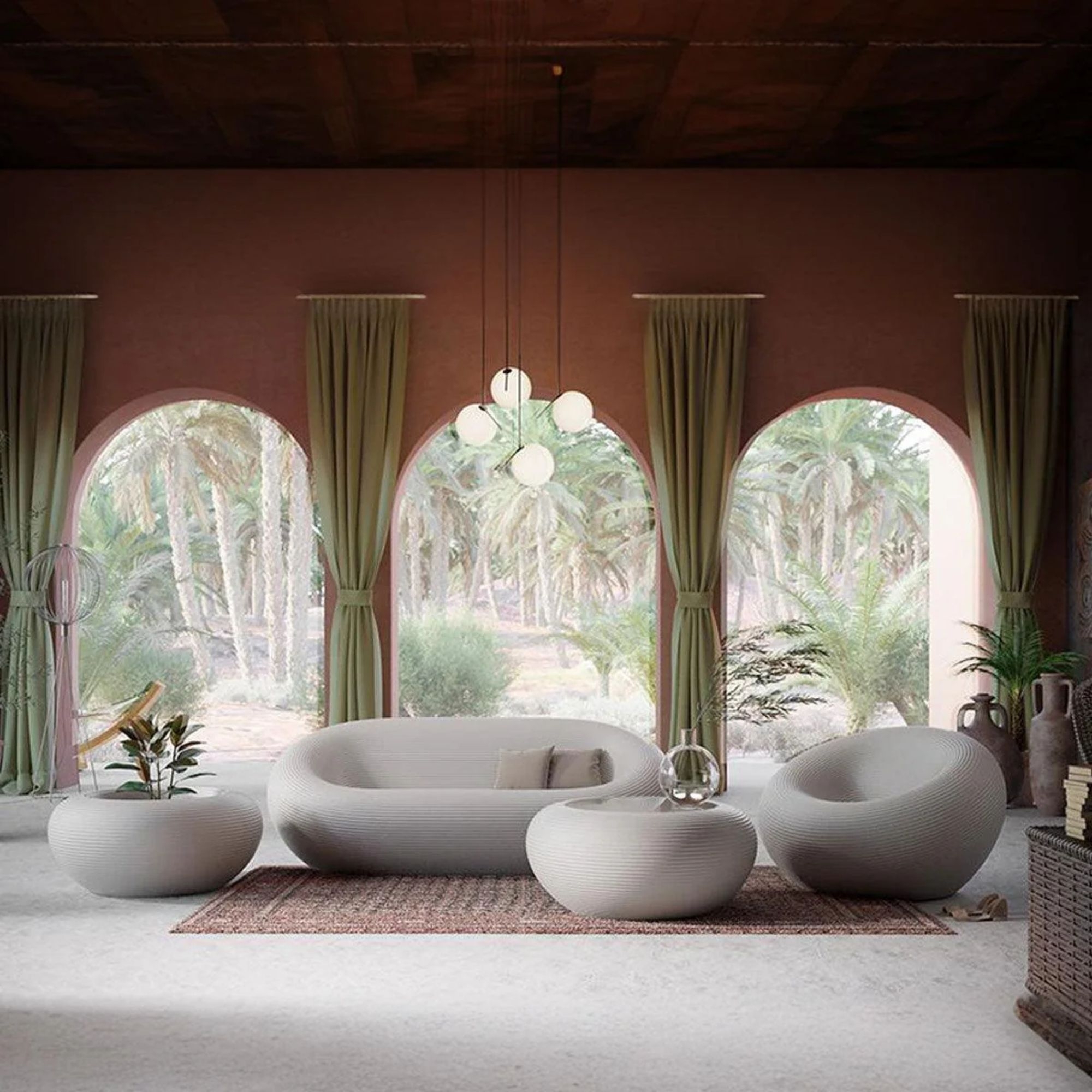 The Nami Mix Outdoor Low Table is an extraordinary work of art created by Qeeboo, entirely made of recyclable polyethylene, a material that guarantees weather resistance, versatility, and durability, making it ideal for outdoor environments as well. This splendid table features a unique design, achieved through the rotation of a section along the diagonal axis, and boasts a perfectly circular shape where the moldings on its surface extend from the center towards the edges in a sequence of concentric rings. Available in three wonderful shades, it easily adapts to any context and decorating style: whether it is located in a living room with a minimalist design or on a modern terrace, the Nami Mix Outdoor Low Table brings a sense of luxury and tranquility to any setting. Additionally, the ease of maintenance is a strength that makes this table not just an object with a lasting aesthetic value, but also a functional and cutting-edge product. Choose this incredible sculpture, a hymn to creativity and comfort, for yourself too. Designed by Stefano Giovannoni for Qeeboo.