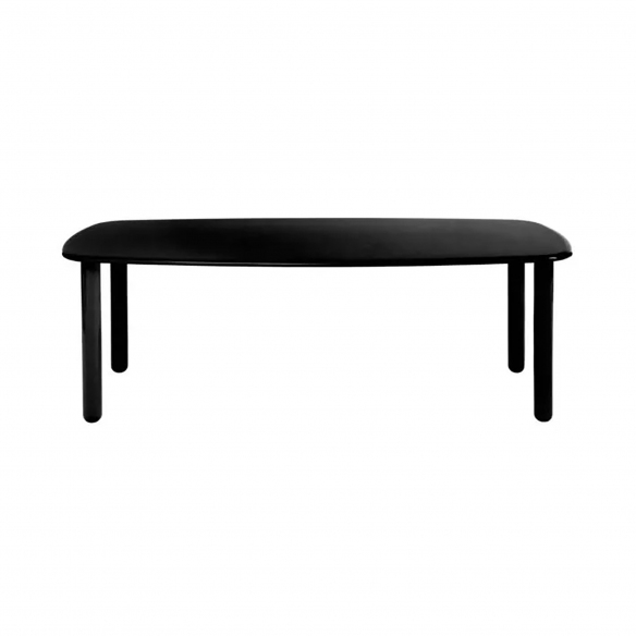Tottori is an extendable table in two dimensions. The distinctive elements are represented by the soft and rounded shape of the top, made of MDF with a shaped edge, and by the generous diameter of the turned solid wood legs. The finish is a glossy lacquer in three color variants. Internal use only. Designed by Kateryna Sokolova for Driade.