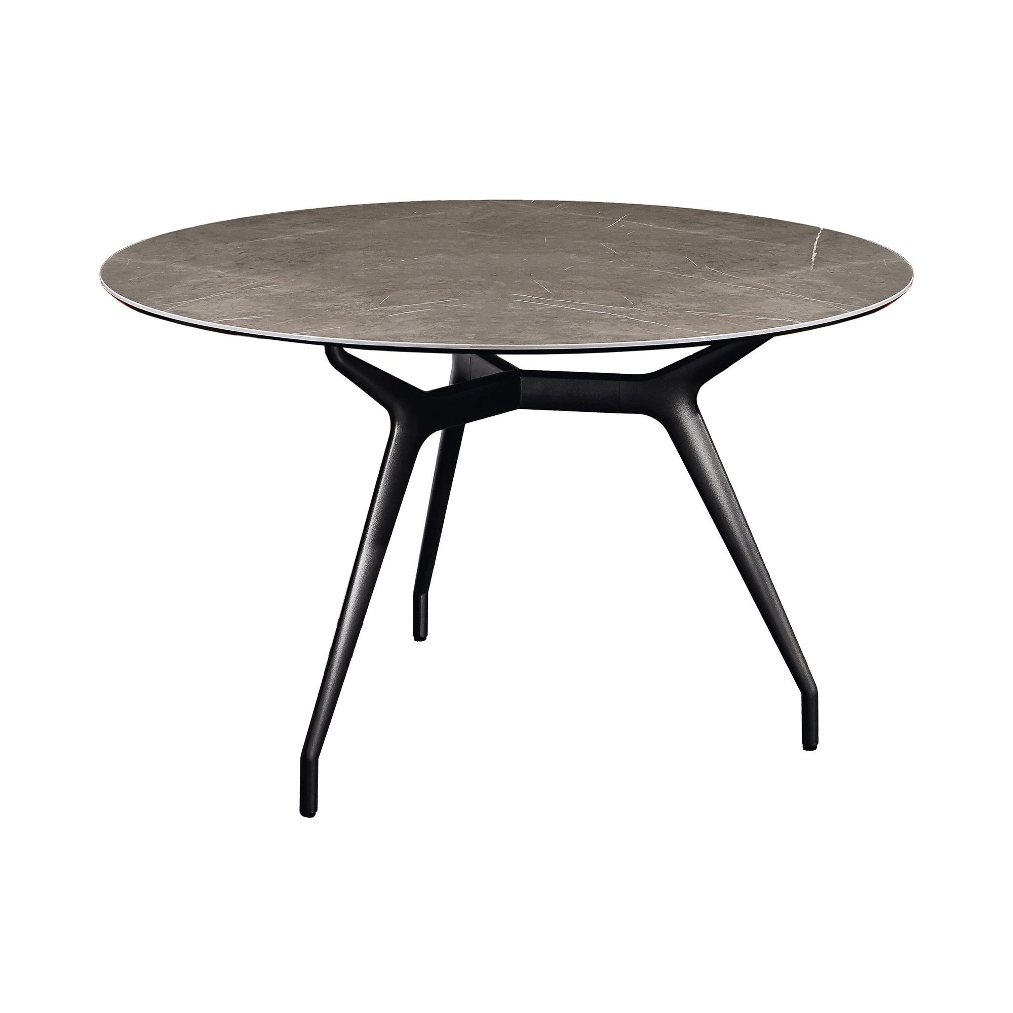 Round table with a 3-leg base from the Arkos collection, made with a lacquered aluminum base and a ceramic or liquid glass top. Available in 2 sizes, Arkos is an elegant addition to any decor. Crafted with the highest quality materials, the round Arkos table features a modern and refined design. Its round shape is perfect for creating a convivial and welcoming atmosphere. With its durable surface and ideal dimensions, the Arkos table offers a splendid combination of design and functionality. Designed by Gianluigi Landoni for Sovet.