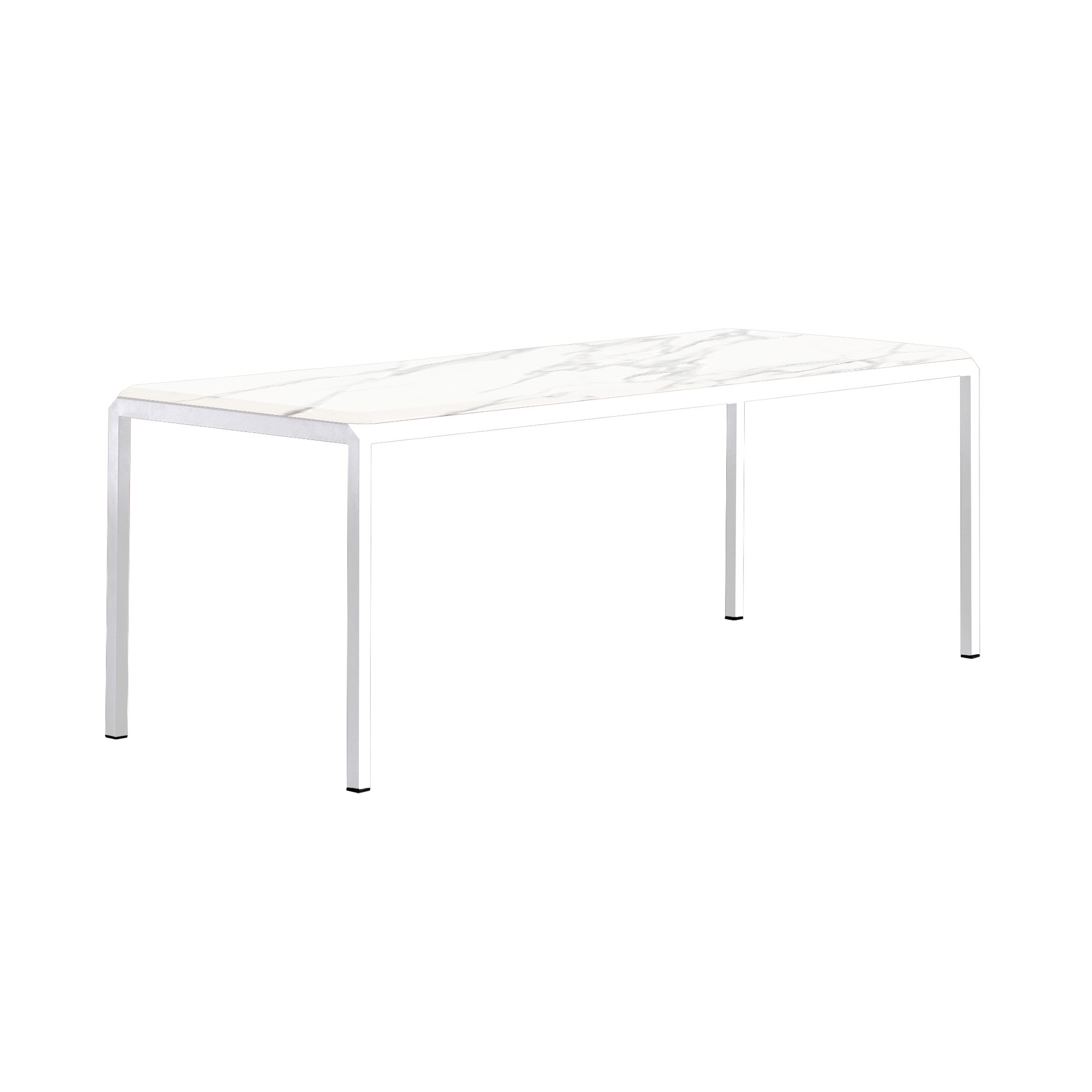 Bebop table 210x83 cm, made with painted steel base and top in scratch-resistant lacquered MDF or marble. Compact, elegant and made with quality materials, the Bebop table stands out for its clean lines and solid structure. Ideal for family dinners or welcoming friends, the Bebop table adds a touch of contemporary style to your decor. It combines aesthetics and practicality, guaranteeing you an elegant and functional solution for your space. Designed by Enrico Cesana for MyHome Collection.