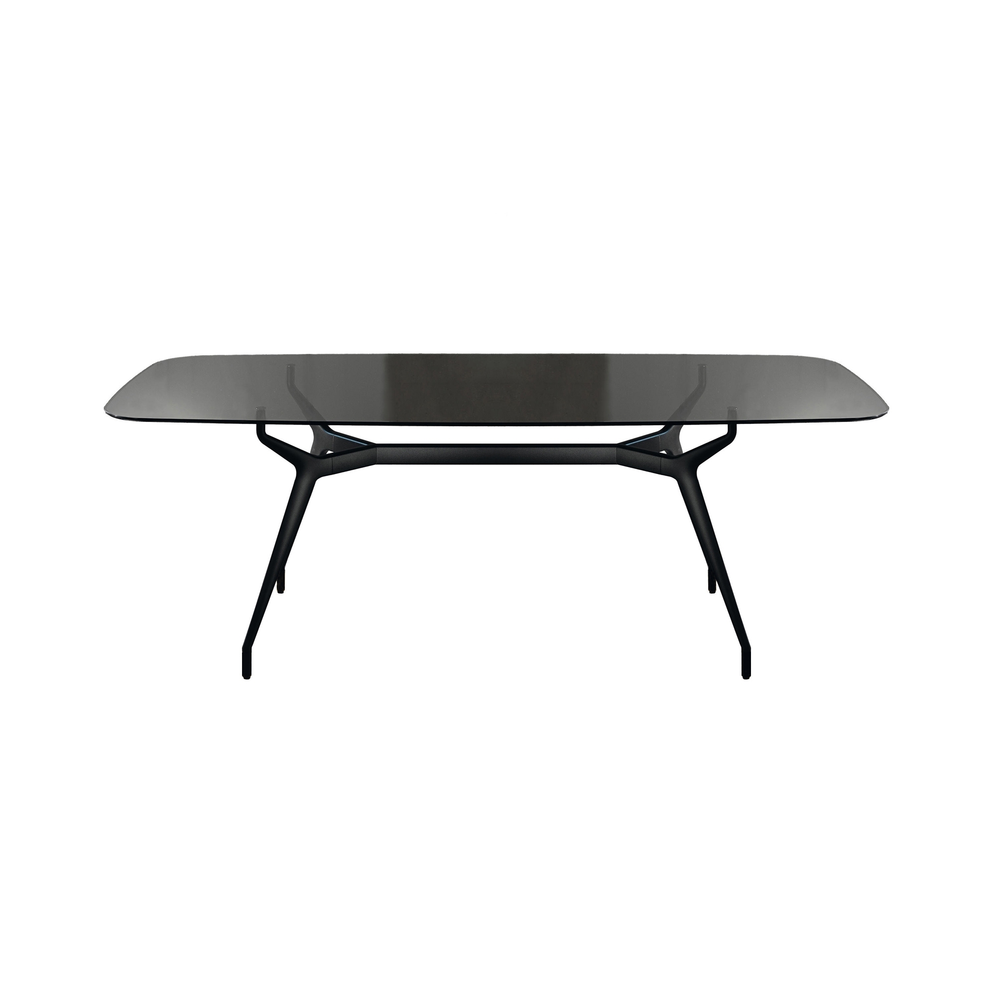 Arkos Shaped Rectangular table made with lacquered aluminum base and Liquid Glass top. Available in 5 different sizes, Arkos Shaped Rectangular is an elegant addition to any decor. Made with the highest quality materials, the Arkos Shaped table features a modern and refined design. Its rectangular shape makes it perfect for creating a convivial and welcoming atmosphere. With its durable surface and ideal dimensions, the Arkos Shaped Rectangular table offers a splendid combination of design and functionality. Designed by Gianluigi Landoni for Sovet.