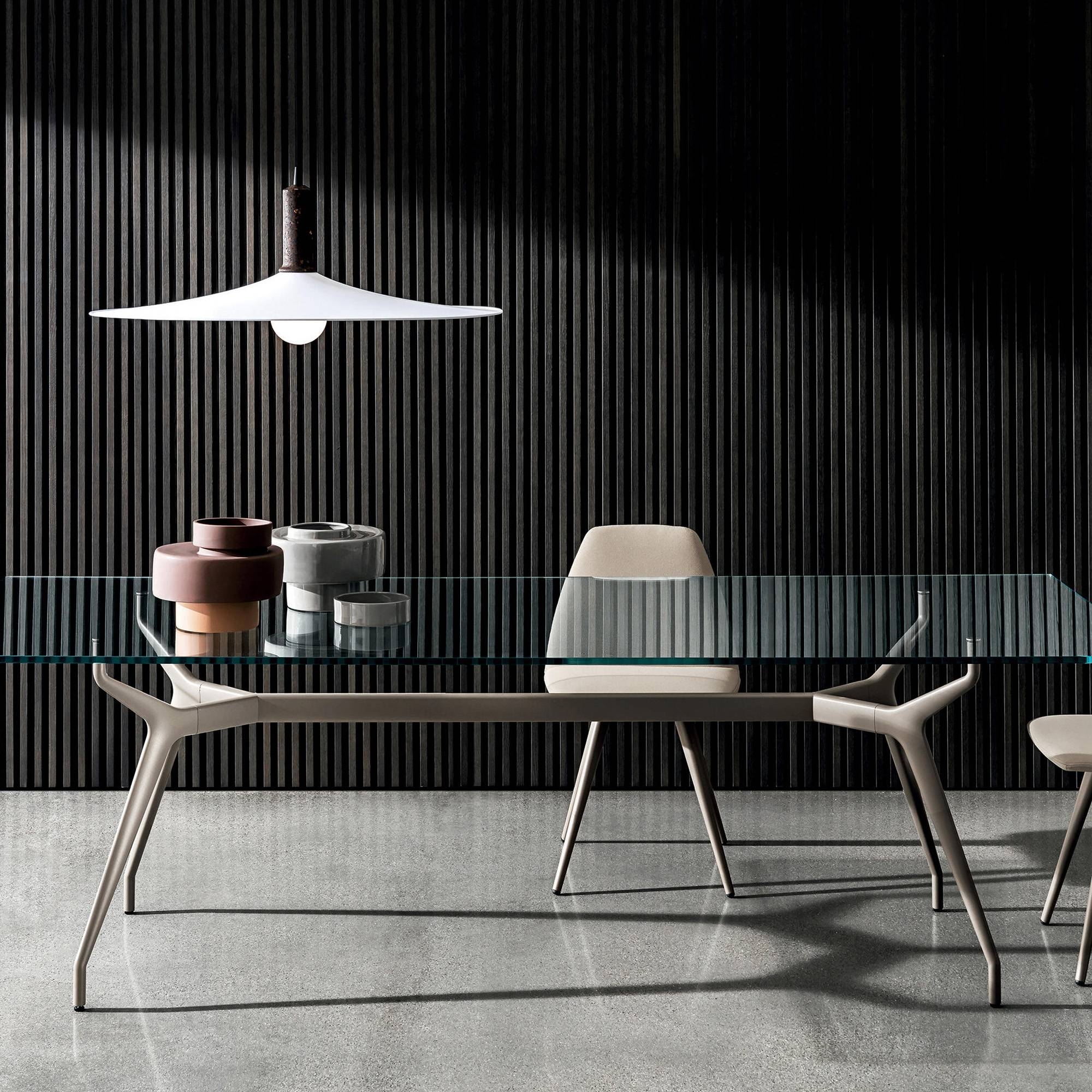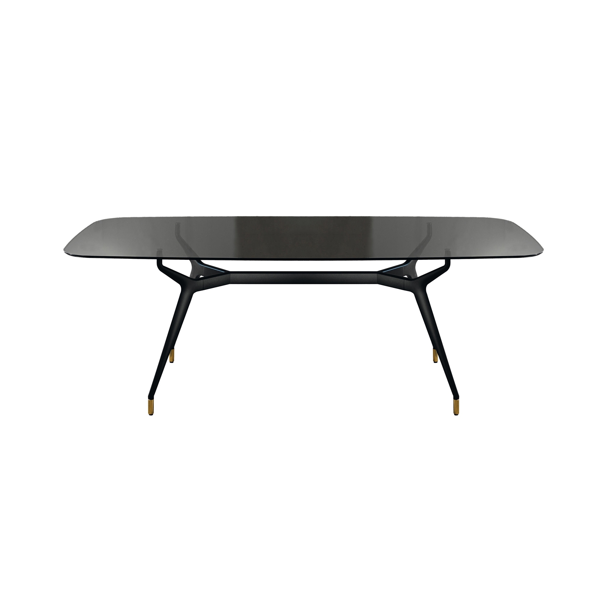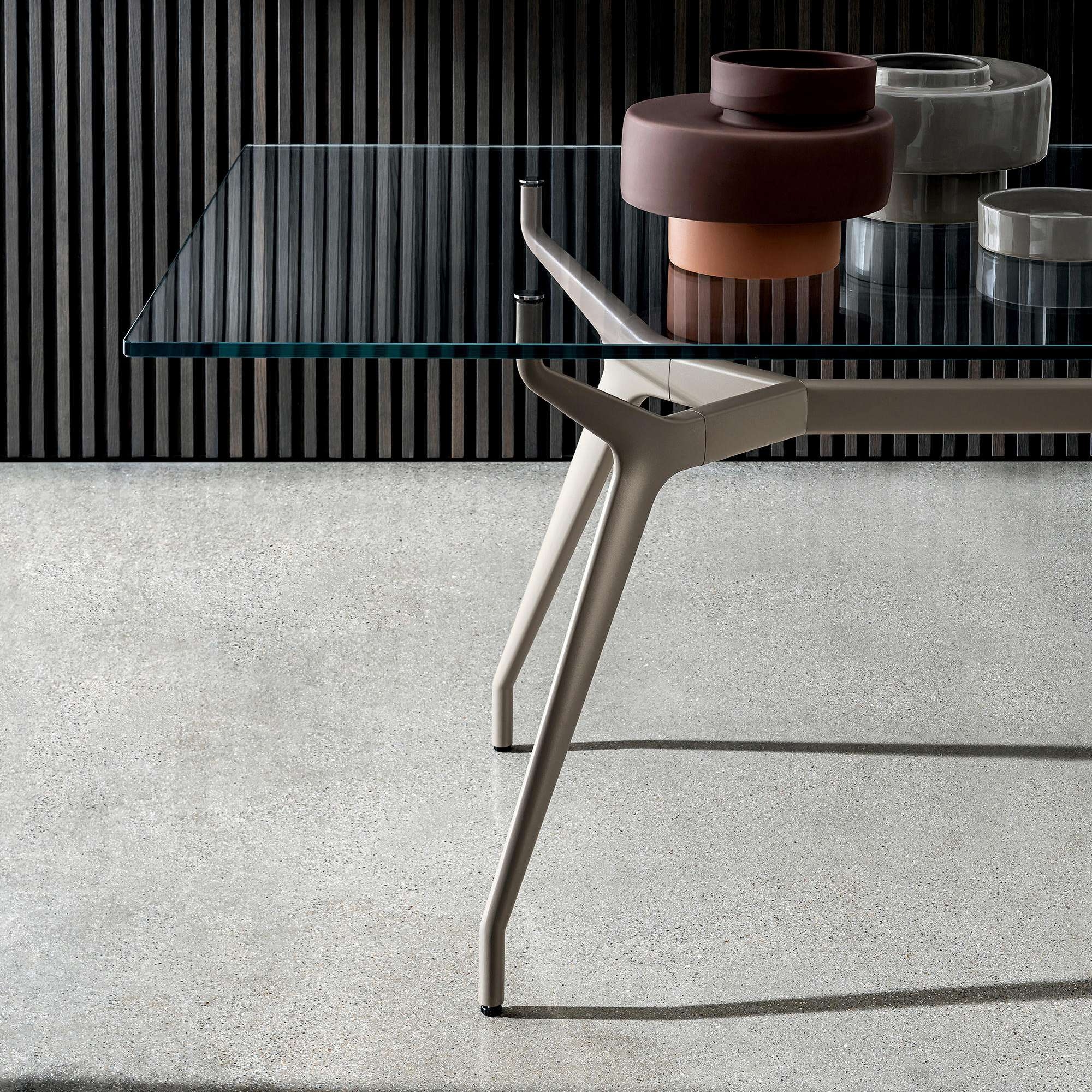 Arkos Shaped Rectangular table made with lacquered aluminum base and glass top. Available in 5 different sizes, Arkos Shaped Rectangular is an elegant addition to any decor. Made with the highest quality materials, the Arkos Shaped table features a modern and refined design. Its rectangular shape makes it perfect for creating a convivial and welcoming atmosphere. With its durable surface and ideal dimensions, the Arkos Shaped Rectangular table offers a splendid combination of design and functionality. Designed by Gianluigi Landoni for Sovet.