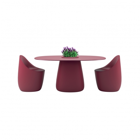 The Cobble table, measuring 160 cm with a central vase and an HPL top, is an incomparable product by Qeeboo, made from recyclable polyethylene, a material that ensures longevity, versatility, and resistance to scratches and weathering, making it perfect for outdoor use as well. The Cobble table, available in four beautiful colors, is a piece of design that, thanks to its simple and sinuous lines, creates a warm and welcoming atmosphere and can blend into any environment, from a living room with classic design to a modern-style patio, from a home office to a contemporary garden. The uniform and smooth surface of the table invites touch, offering a pleasant sensation both to the hand and the eye, and its main feature is the central vase, which can serve as a container for plants and flowers. The generous size of 160 cm can accommodate a multitude of people (about six), making it ideal for family evenings or gatherings with friends. With this Cobble table, Qeeboo manages to offer a design object that stands out not only for its functionality but also for its aesthetic value. Designed by Elisa Giovannoni for Qeeboo.