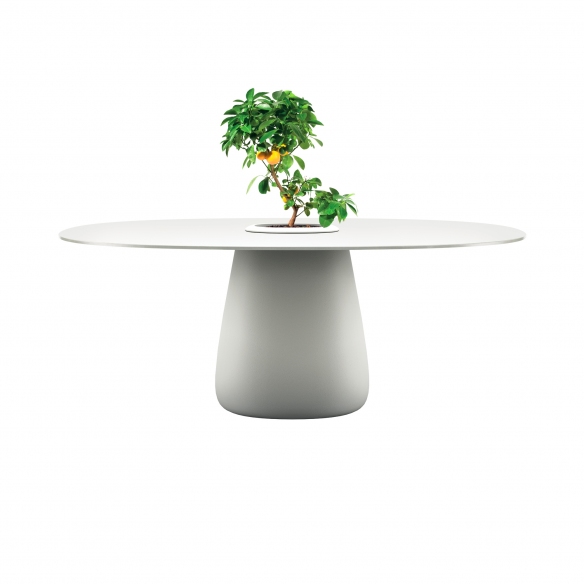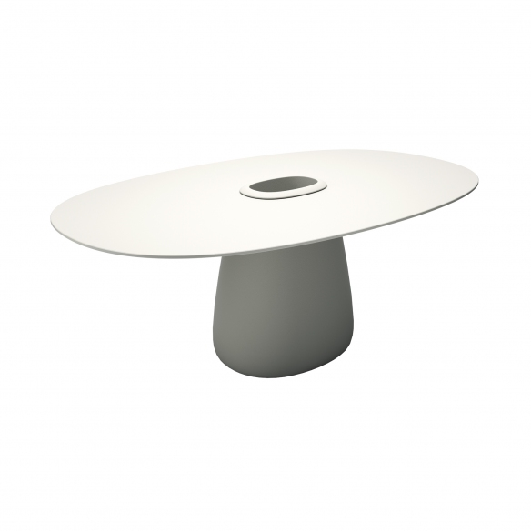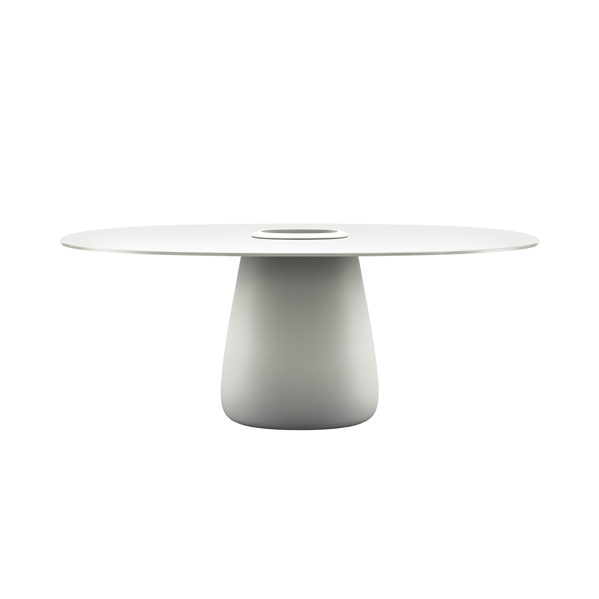 The Cobble table, 190 cm in size with a central vase, is an unparalleled product by Qeeboo, made from recyclable polyethylene and HPL top. This material ensures longevity, versatility, scratch resistance, and weather resistance, making it perfect for outdoor use as well. The Cobble table, available in 3 magnificent colors, is a piece of design that, with its simple and sinuous lines, creates a warm and welcoming atmosphere and can match any setting, from a living room with a classic design to a modern-style patio, from a home office to a contemporary garden. Moreover, the uniform and smooth surface of the table invites touch, offering a pleasant sensation both to the hand and the eye. The main feature is the vase at the center of the table, which can serve as a container for plants and flowers. Its generous size of 190 cm can accommodate a multitude of people (about eight), making it ideal for family evenings or gatherings among friends. With this Cobble table, Qeeboo succeeds in offering a design object that stands out not only for its functionality but also for its aesthetic value. Designed by Elisa Giovannoni for Qeeboo.