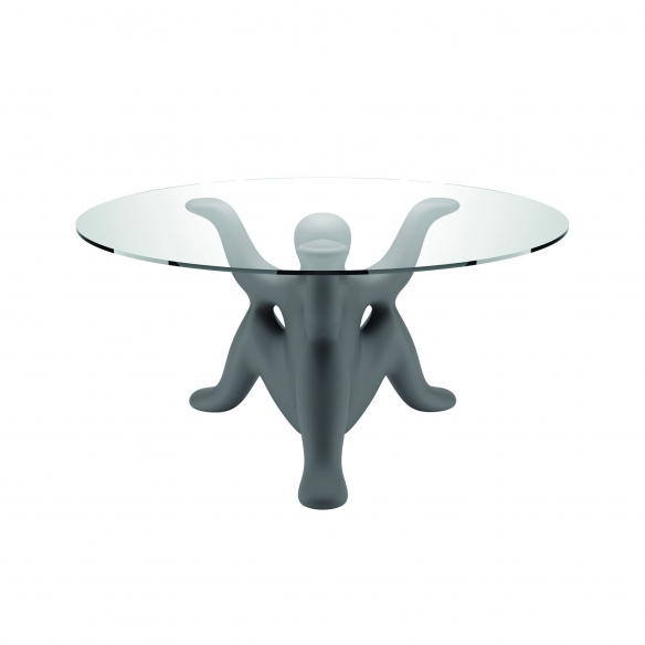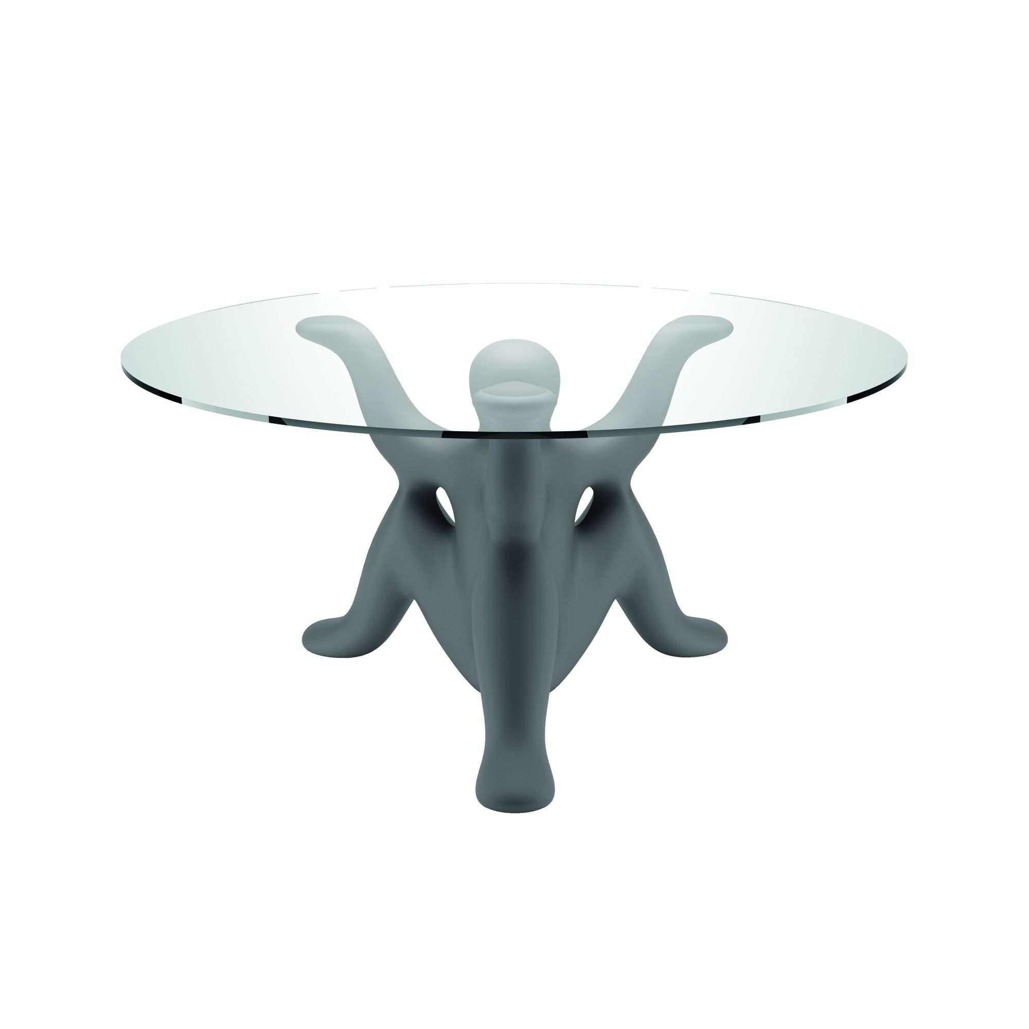 The Helpyourself table is an imaginative product by Qeeboo, made of robust glass and recyclable polyethylene, a material that ensures resistance, durability, and ease of maintenance. This splendid table is available in three colors: white, black, and terracotta, and thanks to its clean lines, it seamlessly integrates into various spaces and styles, from contemporary living rooms to large eclectic terraces. Additionally, the table's dimensions mean it can also fit into public settings such as pubs and restaurants, adding a touch of whimsy and playfulness. Helpyourself is a design piece meant to capture the attention of your guests, leaving them amazed by its beauty. The Helpyourself table is more than just a piece of furniture: it is the perfect embodiment of a work of art that becomes practical and functional at the same time. Designed by Philippe Starck for Qeeboo.