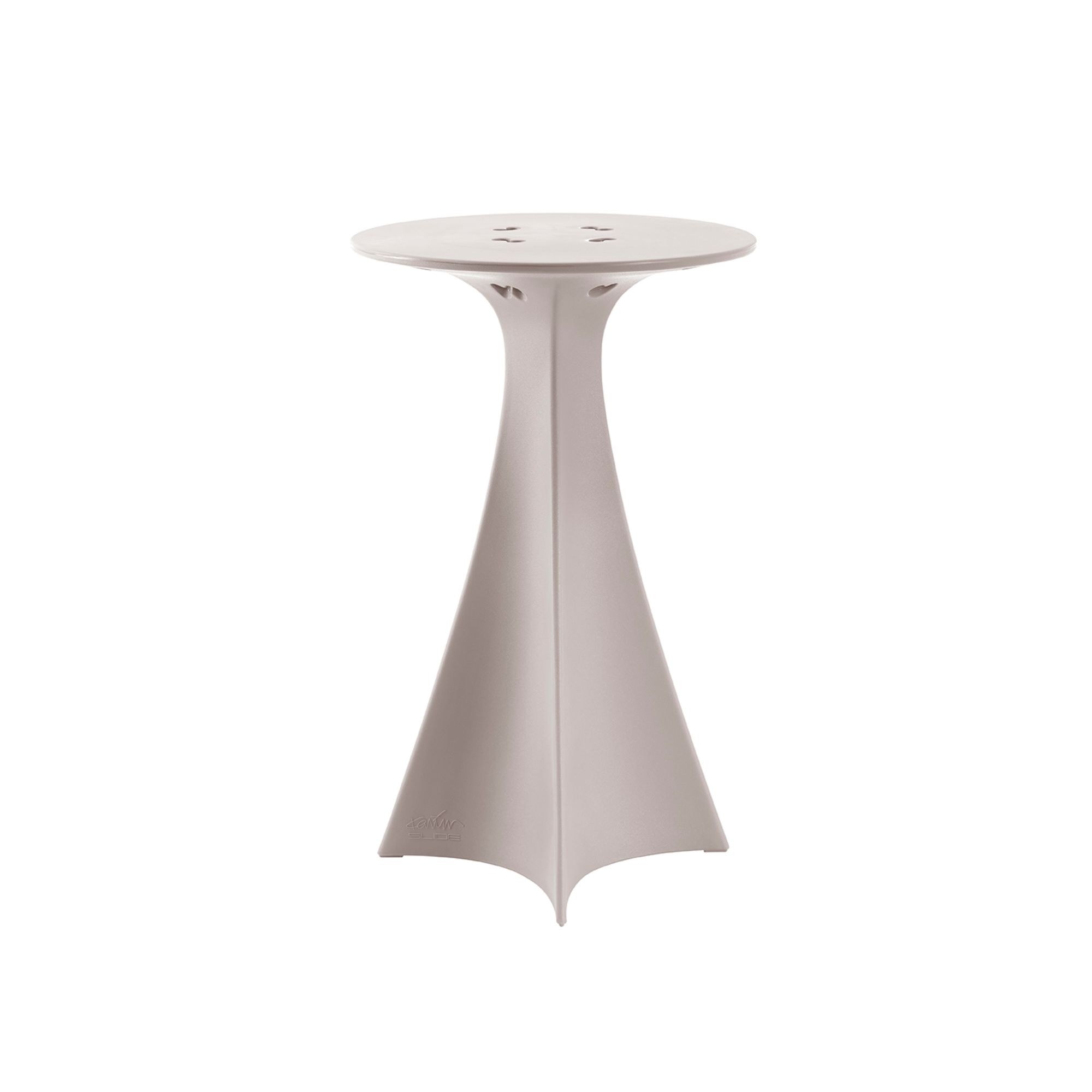 The Jet high table, measuring Ø62x100h cm, is a beautiful piece of furniture made entirely of polyethylene by Slide, a material appreciated for its durability, longevity, and versatility. The Jet table features a curvilinear base that enhances the silhouette of the stool from the same collection, and its surface is decorated with symbols that are historically dear to the designer. This table has been designed to optimally and uniquely occupy spaces, with its versatile and geometric structure: depending on the user's needs, it can serve as a support surface for drinks, appetizers, or various foods, or as a valuable piece of furniture. Thanks to its minimalist and essential design, the table can harmoniously match any type of setting, both indoor and outdoor: from a spacious modern terrace to a classic living room, from a garden with a swimming pool to the dining room, lending brightness and class to any space. The Jet table by Slide represents a furnishing solution of great visual impact and practicality, capable of transforming any corner, whether inside or outside, into an oasis of style. Designed by Karim Rashid for Slide.