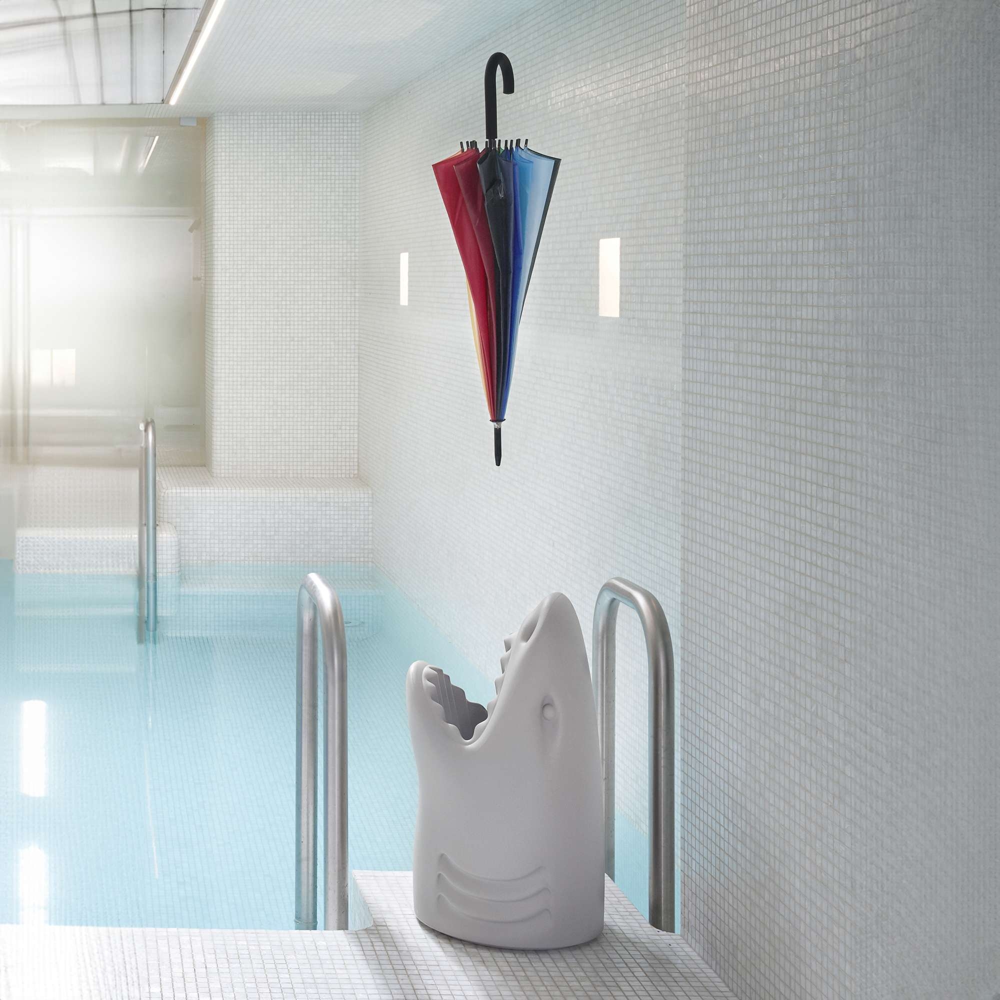 The Killer umbrella stand is an outstanding piece of furniture made by Qeeboo using recyclable polyethylene, a material that ensures durability, longevity, and versatility. The Killer is an umbrella stand designed in the shape of a shark that can also be used as a wastepaper basket, champagne cooler, or for any other purposes around the house and beyond. This umbrella stand is available in five beautiful colors: gray, black, dark gray, light gray and denim blue, making it ideal for seamlessly integrating into any type of design and space in your home, from the entryway to the living room, and is also perfect for commercial spaces. Moreover, the Killer also evokes a sense of strength and agility, transforming a common accessory into a true visual dialogue and capturing the attention of your guests. With Qeeboo, each piece is meticulously crafted, affirming its commitment to creating products that embody the perfect combination of aesthetics and functionality. Designed by Studio Job for Qeeboo.