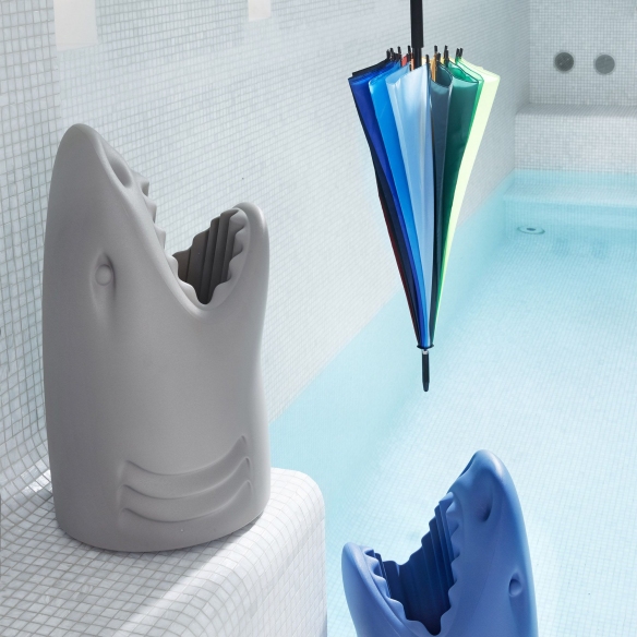 The Killer umbrella stand is an outstanding piece of furniture made by Qeeboo using recyclable polyethylene, a material that ensures durability, longevity, and versatility. The Killer is an umbrella stand designed in the shape of a shark that can also be used as a wastepaper basket, champagne cooler, or for any other purposes around the house and beyond. This umbrella stand is available in five beautiful colors: gray, black, dark gray, light gray and denim blue, making it ideal for seamlessly integrating into any type of design and space in your home, from the entryway to the living room, and is also perfect for commercial spaces. Moreover, the Killer also evokes a sense of strength and agility, transforming a common accessory into a true visual dialogue and capturing the attention of your guests. With Qeeboo, each piece is meticulously crafted, affirming its commitment to creating products that embody the perfect combination of aesthetics and functionality. Designed by Studio Job for Qeeboo.