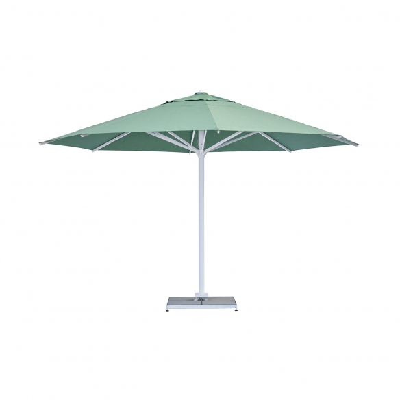 The Telescopic round garden umbrella is fabricated with a powder-coated aluminum structure, a square base made of concrete and steel, and an outdoor parasol made of Acrylfabric fabric. Available in various colors for the parasol, this umbrella is specifically designed to meet the unique needs of the catering and hotel industries. Despite its imposing structure, it doesn't compromise on practicality. Although large in size, the Telescopic umbrella can be closed simply and quickly, avoiding any inconvenience with tables or benches placed underneath. This feature is made possible by a cutting-edge telescopic mechanism that lifts the aluminum umbrella during the closure process, thus avoiding any obstruction in the range of action. Equipped with a removable crank system, it allows for easy and intuitive use. While created for commercial spaces, this umbrella is also ideal for home gardens. It adapts its presence and function to more sophisticated settings or convivial gatherings with absolute comfort. Crafted by Weishäupl, the umbrella manifests the commitment of blending optimal functionality with aesthetic perfection. The Round Telescopic Garden Umbrella translates Weishäupl’s ethos of innovative craft into each detail, creating a versatile solution for commercial and private settings alike.