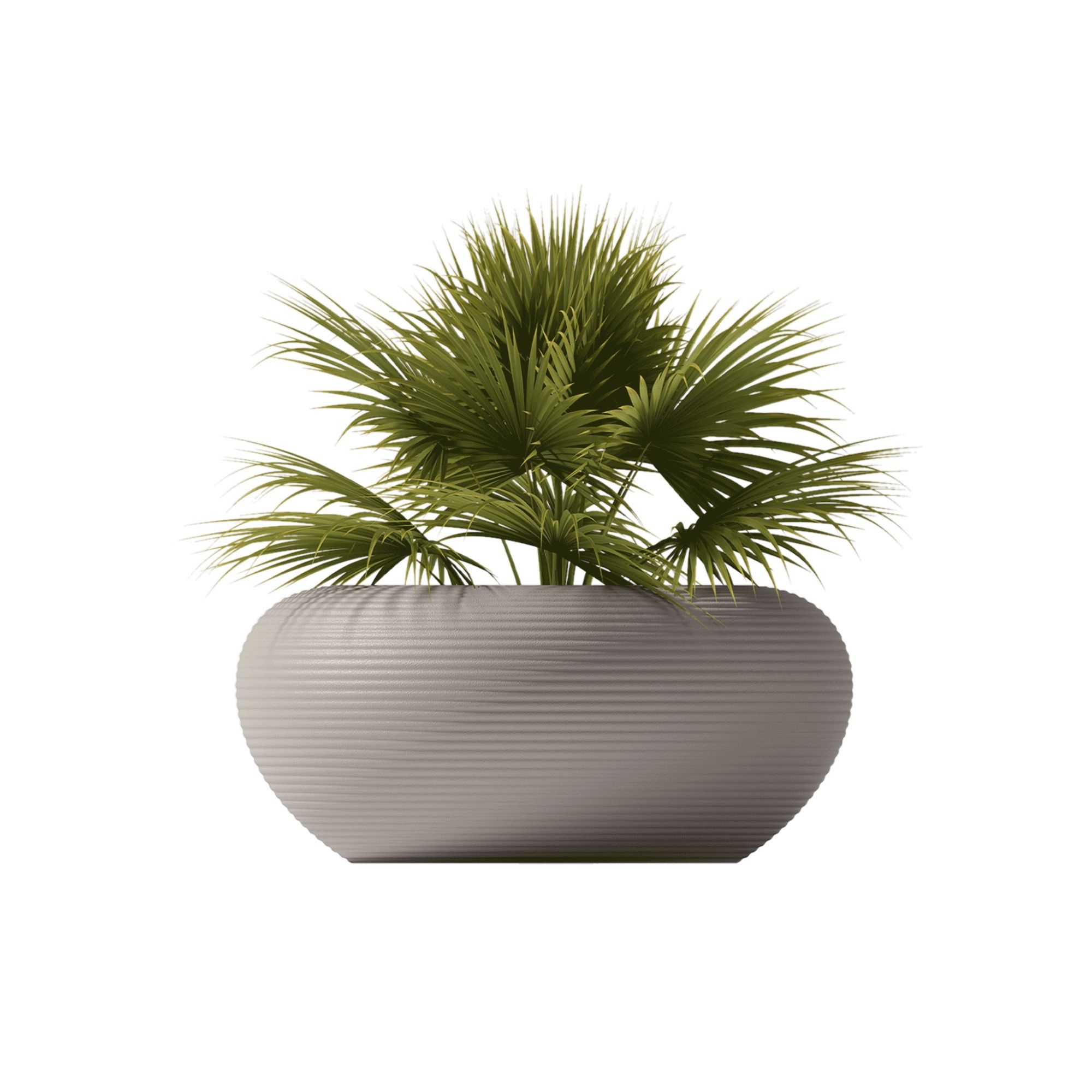 The Nami Outdoor Planter is an extraordinary work of art created by Qeeboo entirely from recyclable polyethylene, a material that ensures weather resistance, versatility, and durability, making it ideal for outdoor use. This stunning planter features a unique design, achieved by rotating a section along the diagonal axis, and boasts a perfectly circular shape where the moldings on its surface extend from the center to the edges in a sequence of concentric rings. Available in three wonderful shades, it easily adapts to any context and style of decor: whether it is placed in a minimalist living room or on a modern terrace, the Nami Outdoor Planter adds a sense of luxury and tranquility to any environment. Additionally, its ease of maintenance is a strength that makes this planter not only a product with aesthetic value that endures over time but also a functional and cutting-edge product. Choose this incredible sculpture too, a hymn to creativity and comfort. Designed by Stefano Giovannoni for Qeeboo.