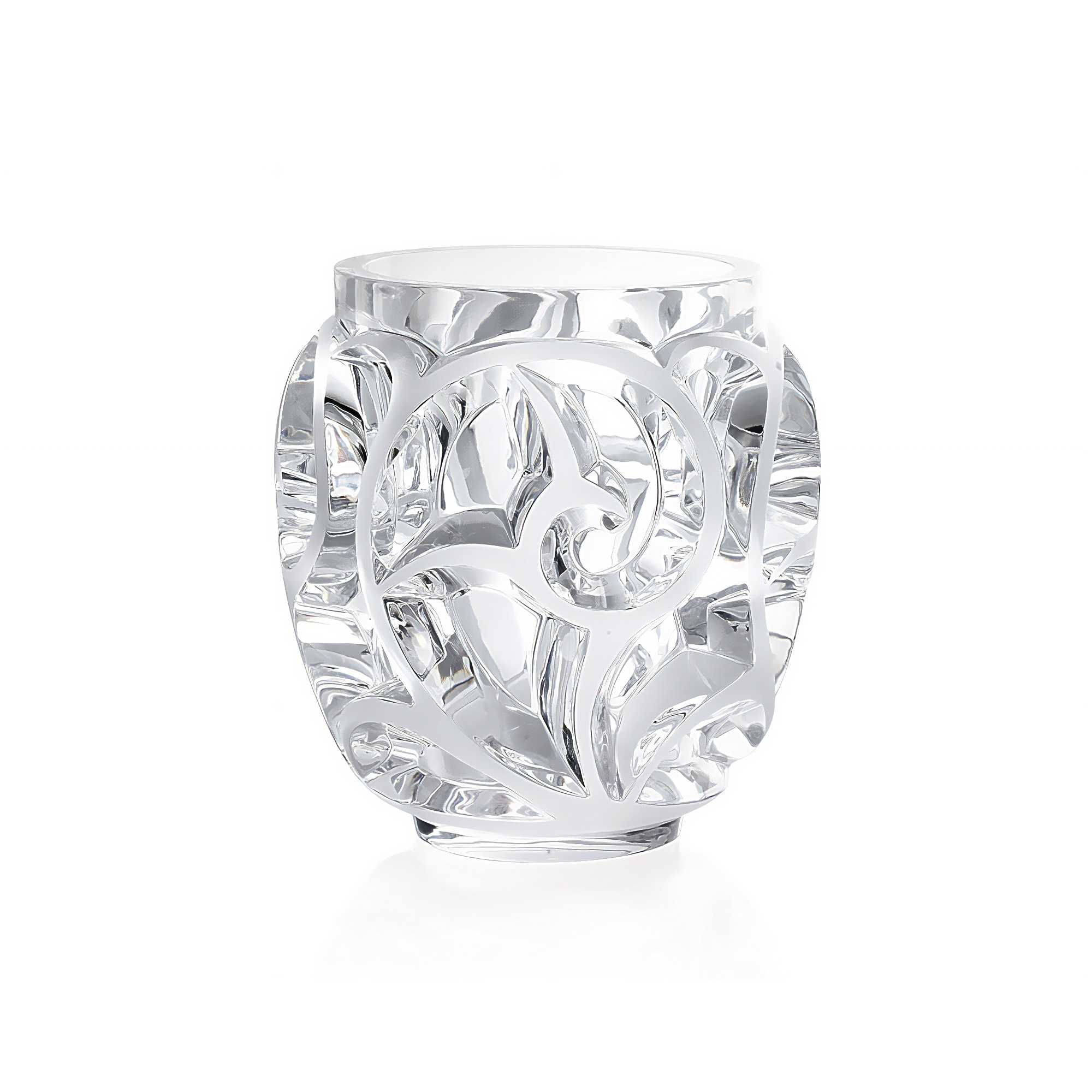 The Lalique Tourbillons collection is a line of precious crystal objects inspired by the movement and features of fern leaves, a theme so close to the heart of the crystal master, René Lalique. Created in 1933 by René himself, the Tourbillons collection presents various objects with an abstract design that leaves the observer free to interpret. It includes vases, sculptures, candle holders and chandeliers, handcrafted in clear or colored crystal, with points of black or golden enamel to emphasize the details. The Tourbillons collection is a perfect synthesis of modernity in the application of glass, which best expresses the personality of the Lalique brand.