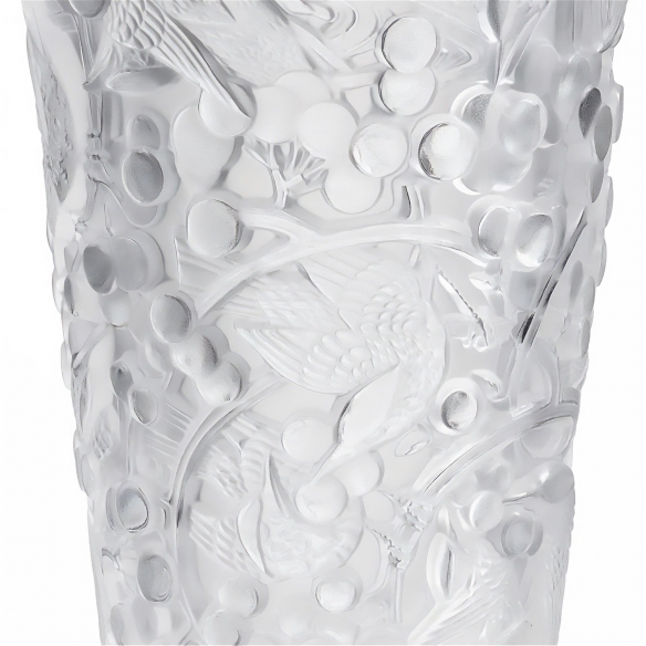 Lalique Merles Et Raisins Clear medium crystal vase