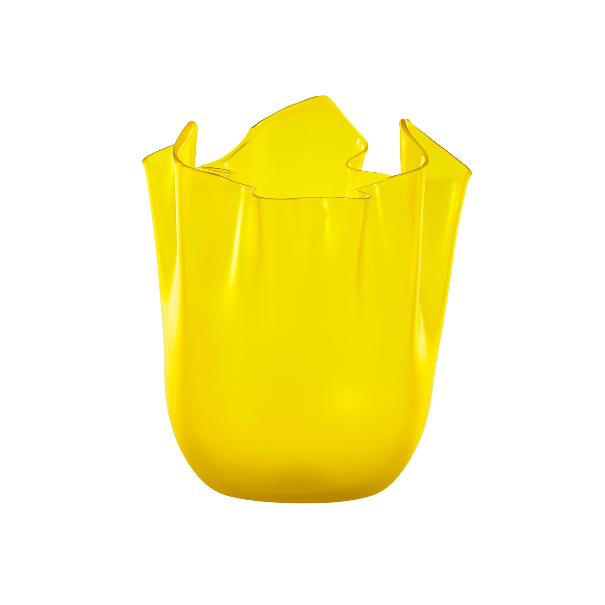 Ginkgo Biloba Fazzoletto medium vase made of Murano glass. This vase features a soft and sinuous design, reminiscent of a fluttering handkerchief, giving it a unique and charming appearance. Handcrafted with incomparable craftsmanship, the Handkerchief Ginkgo Biloba vase offers an explosion of transparency and luminous reflections, enriching any environment with liveliness. Designed by Fulvio Bianconi and Paolo Venini.