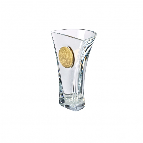 Medusa Madness Clear vase (height 28 cm) made of transparent crystal. Elegant and refined, the Medusa Madness Clear vase strikes with its distinctive silhouette that embraces an innovative spirit without ever neglecting opulence. Its design allows it to capture light and disperse it in a sublime way, ensuring that every space is pervaded by a luminous atmosphere. The presence of the Medusa adds a touch of sophisticated boldness, underlining the high level of craftsmanship and dedication to luxury that Rosenthal meets Versace has always embodied. Each Medusa Madness Clear vase is more than just a furnishing object; it is a bold style statement, a bridge between classic design tradition and contemporary innovation. Whether positioned as a focal point in a minimalist setting or integrated into a more intricate and ornate setting, this vase can elevate any floral arrangement into a true work of art. Made by Rosenthal Versace.