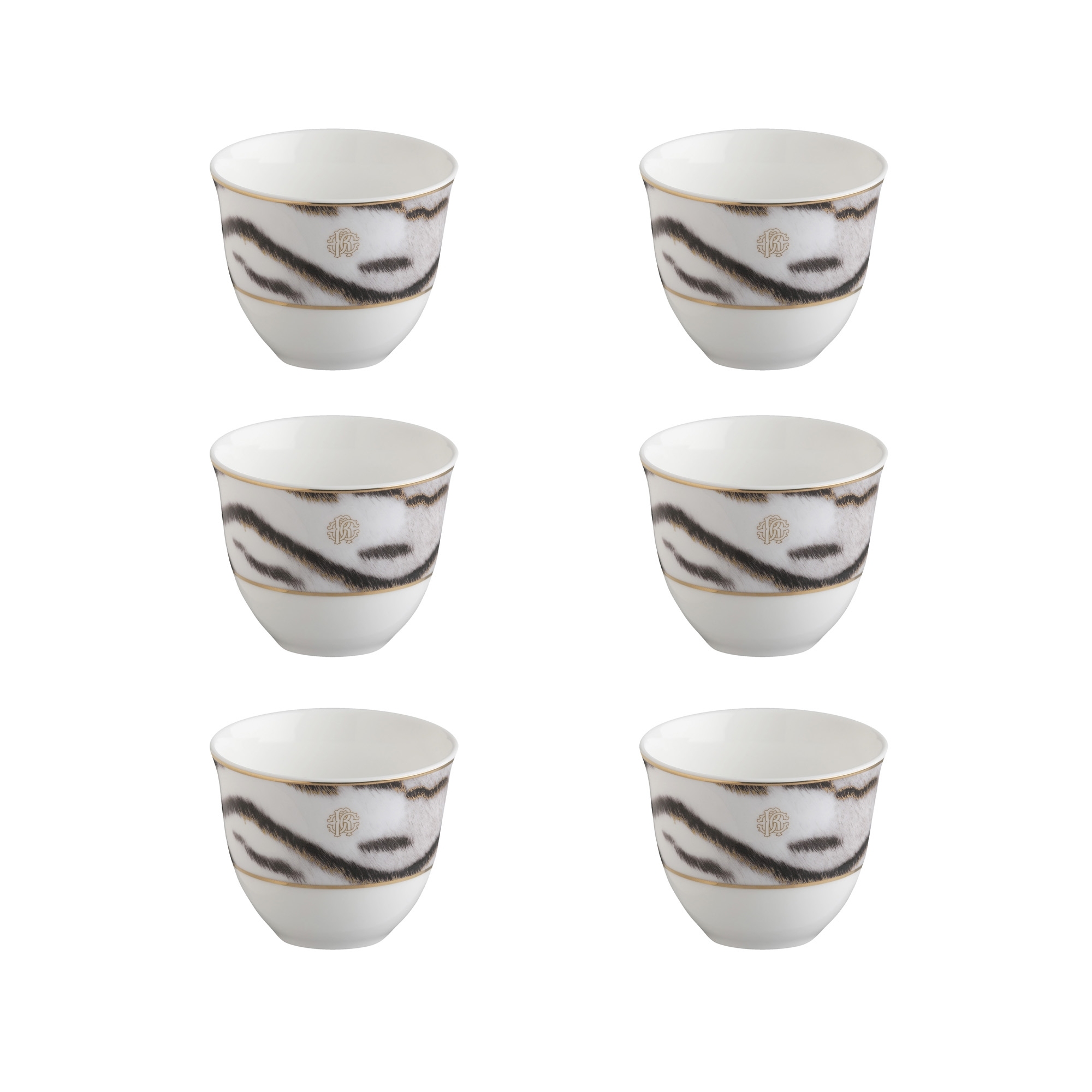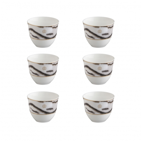 The Tiger set of 6 Arabic cups is a beautiful masterpiece for your kitchen, crafted by Roberto Cavalli from Bone China porcelain, a material revered for its remarkable durability and elegance. This set of 6 Arabic cups features animal motifs typical of the Roberto Cavalli maison, with pure gold details that complete the design of each piece, making it a true design set that uniquely captures the attention of guests. The Tiger set is the ideal choice for those wishing to add a touch of luxury to their kitchen or dining room. The set of 6 Arabic cups is versatile enough to be used for both formal occasions and to enrich the daily routine, demonstrating that high-end design can go hand in hand with practicality. Purchase this refined set here, on Newpop.it!