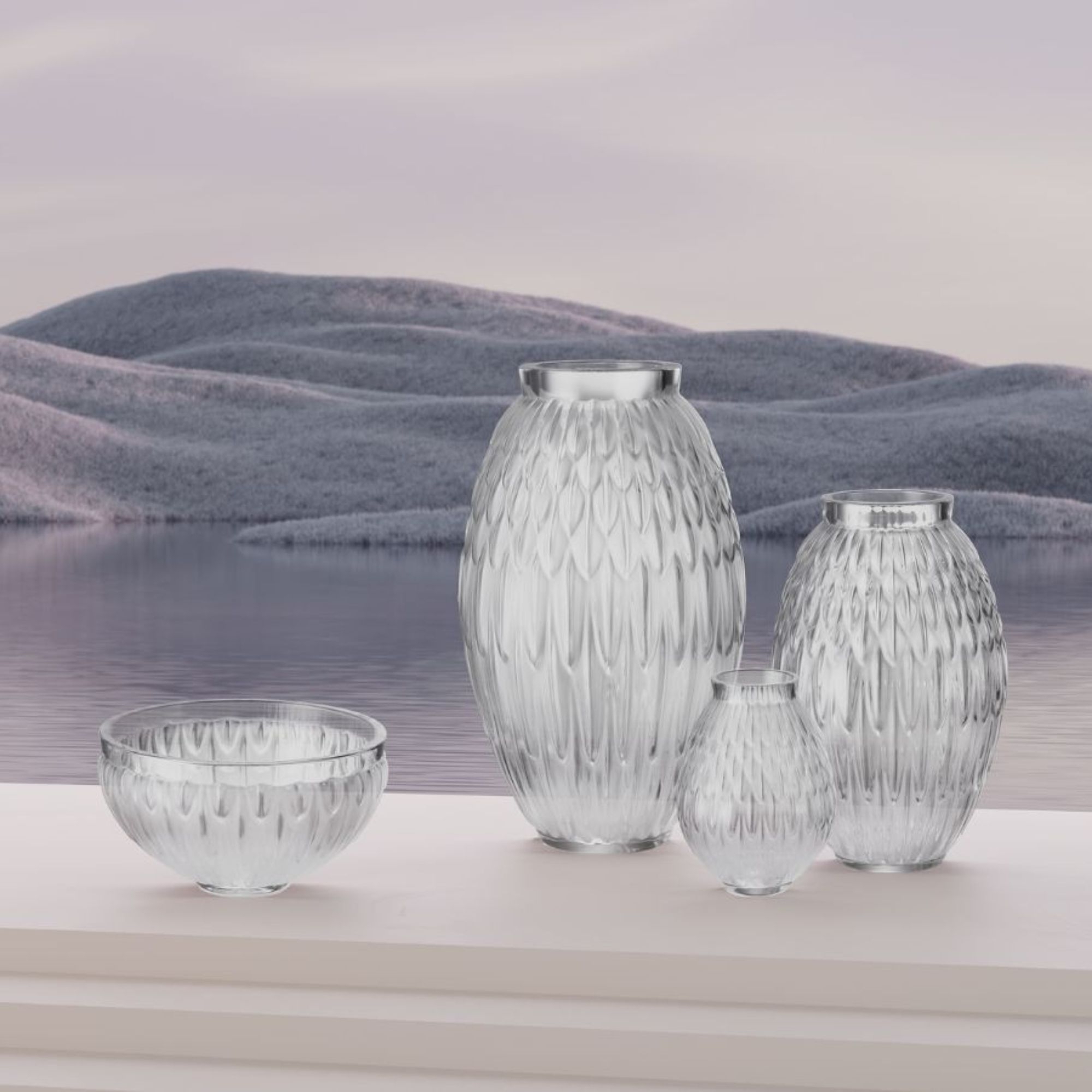 Plumes Vase in the "Clear" variant, entirely made of crystal. The Plumes vase features a sophisticated feather pattern, meticulously engraved into the crystal, reflecting Lalique's attention to detail and the beauty of nature. Each vase is handcrafted by Lalique artisans in France, using techniques refined over generations, ensuring that each piece is a unique work of art. The timeless design and transparent crystal of the Plumes vase make it a versatile piece that enhances any setting, from classic to contemporary. The Lalique Plumes vase is not just a container for flowers; it is a statement piece that adds a touch of luxury and elegance to any room. Whether displayed as a centerpiece or part of a curated collection, this vase brings the unparalleled beauty and craftsmanship for which Lalique is celebrated into your home.