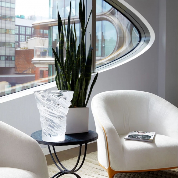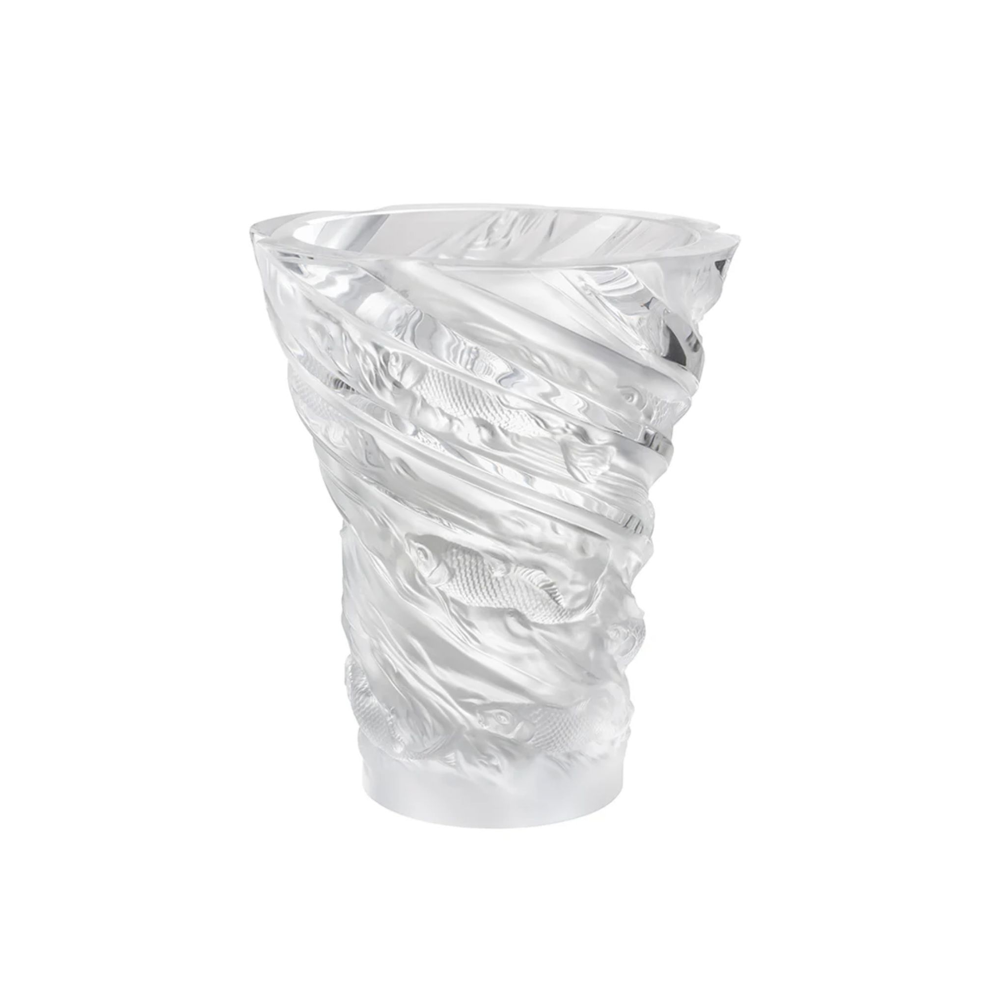 The Carpes Koi vase is a precious work of art crafted by Lalique in clear crystal. Koi are highly valued in Asia because they symbolize wealth, virility, longevity, and perseverance. This symbolism particularly originates from a Chinese legend: having swum upstream across the Yellow River and successfully leaped over the Dragon's Gate waterfall, a courageous carp flew into the sky and transformed into a dragon. Thus, the carp became a symbol of success achieved through perseverance, and this legend continues to be celebrated today during Koinobori to wish children academic and social success. The vase's shape is fluid and organic, almost as if it were sculpted by water itself. The detailed and realistic design of the Koi appears to swim around the vase, immersing itself in an imaginary crystal clear aquatic environment. It's the perfect gift for all lovers of design and history.