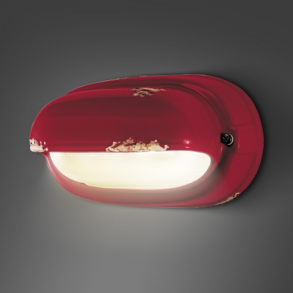 C291 wall lamp made of ceramic with transparent glass diffuser and aluminum frame. Perfect for illuminating a corridor, a living room or an entrance, the C291 wall lamp is a retro-style applique available in different colors and captivates at first glance for its peculiar finish that recalls a worn but skilfully handcrafted object. Light source 1x46W E27 - IP20. Designed and manufactured by Ferroluce.