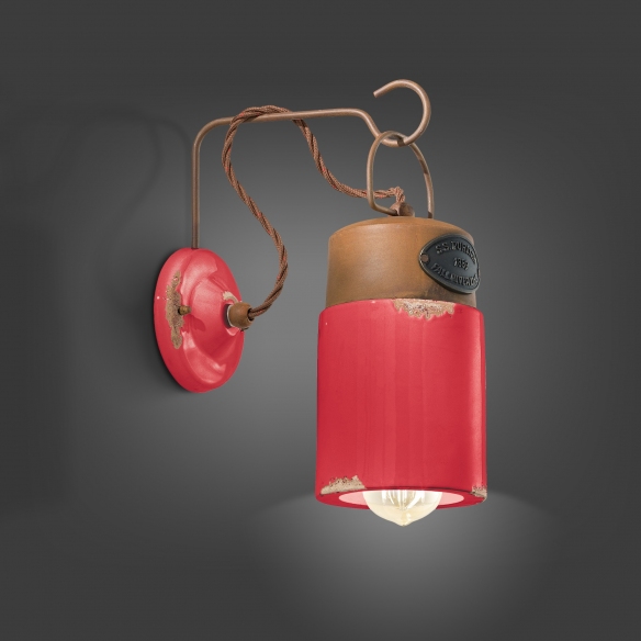 C1621 wall lamp made of ceramic with cor-ten antiqued iron frame and covered cotton cable. Ideal for lighting a corridor, a living room or an entrance, the C1621 wall lamp has a unique design that recalls the lamps of yesteryear and a rust effect deliberately recreated on the ceramic. The lamp is available in multiple colors and you can choose the one that best suits your style and decor. Light source 1x30W E27 - IP20. Designed and manufactured by Ferroluce.
