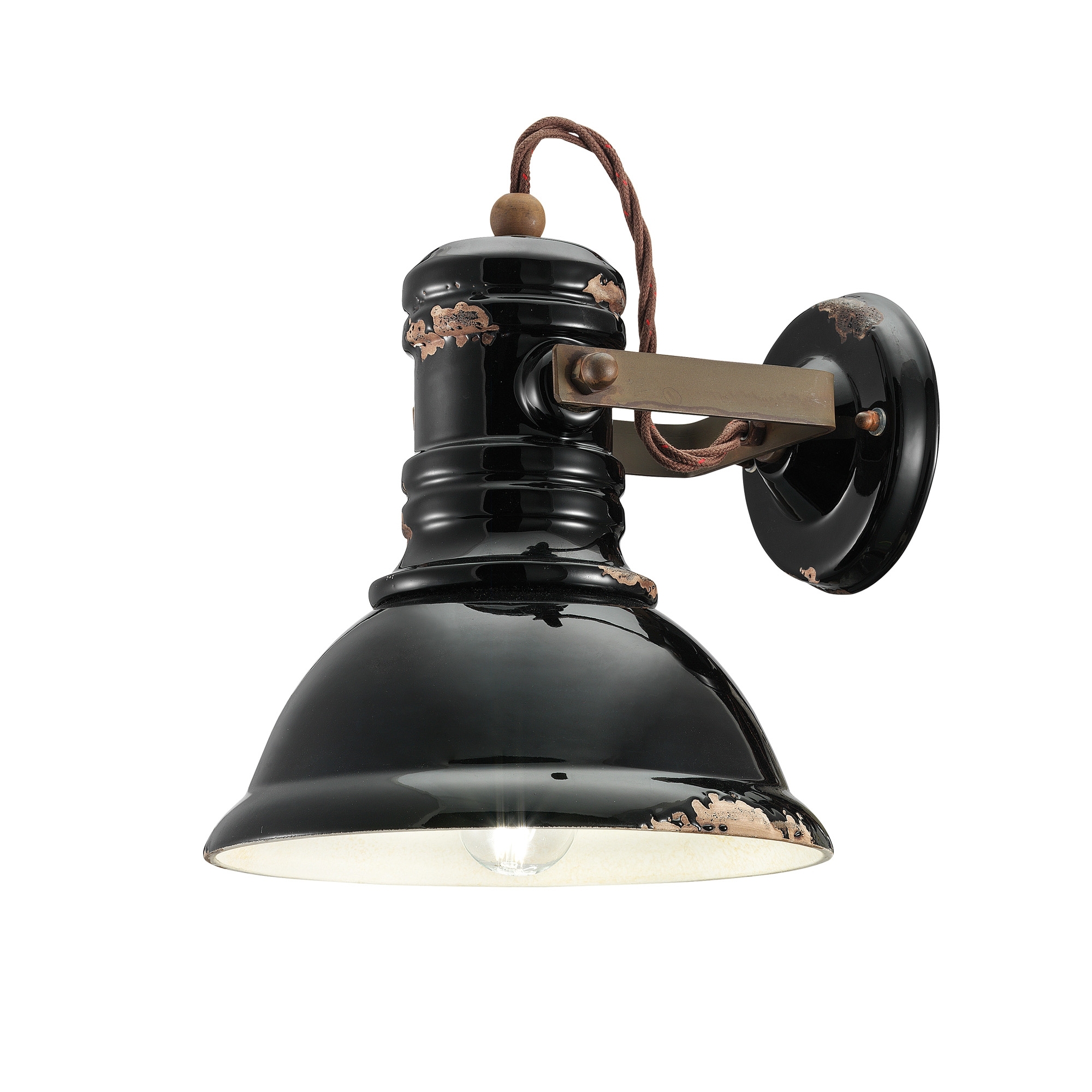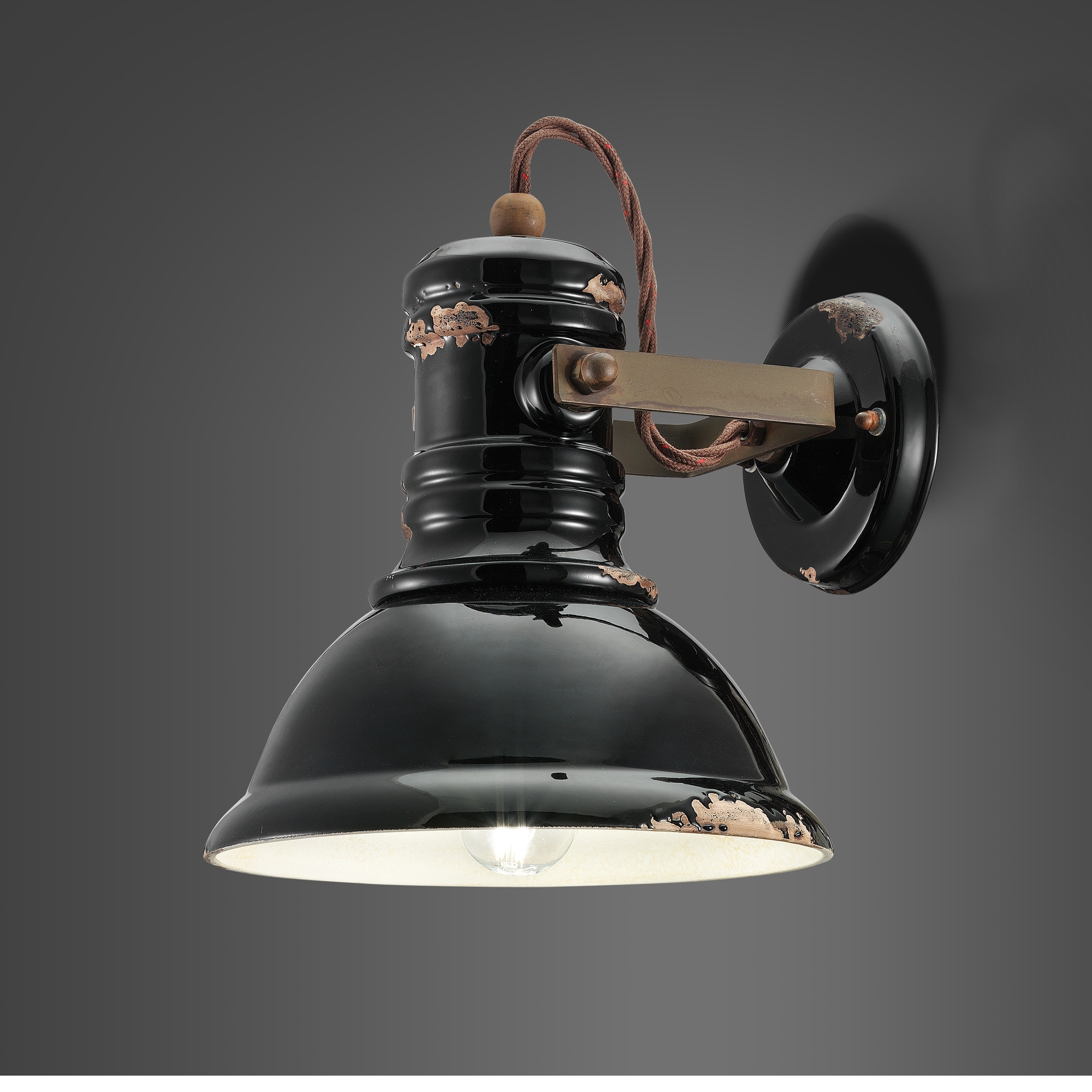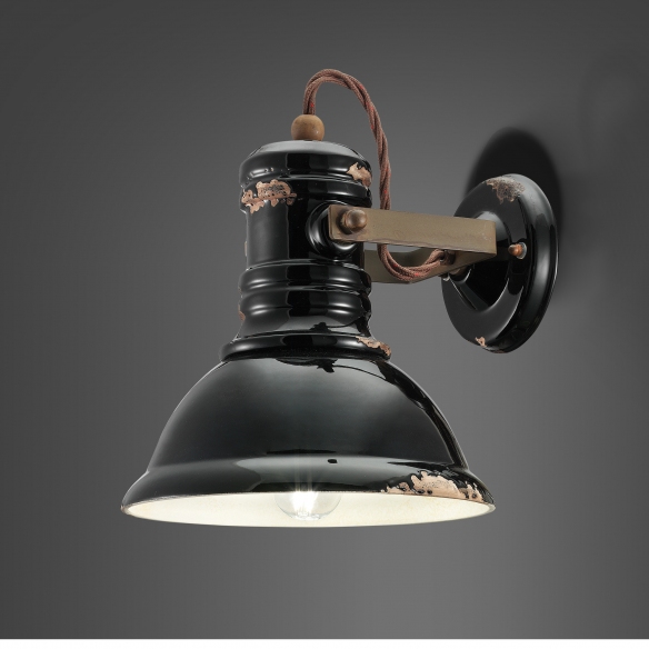 C1693 wall lamp made of ceramic with cor-ten antiqued iron details and covered cotton cable. Available in several colors to adapt to your decor scheme, the C1693 wall lamp has a unique design that recalls lamps of yesteryear and a rust effect deliberately recreated on ceramics and fits equally easily into both domestic and contract. Light source 1x53W E27 - IP20. Designed and manufactured by Ferroluce.