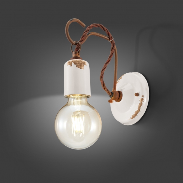 Vintage C665 wall lamp made of ceramic and antiqued iron. Available in 10 elegant color finishes, the Vintage C665 wall lamp is a wall light with an underground flavour, reminiscent of old outdoor lamps. The lamp is ideal for illuminating corridors, transit areas and common areas in an original way, creating an indoor/outdoor effect. Made by Ferroluce.