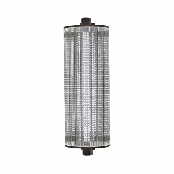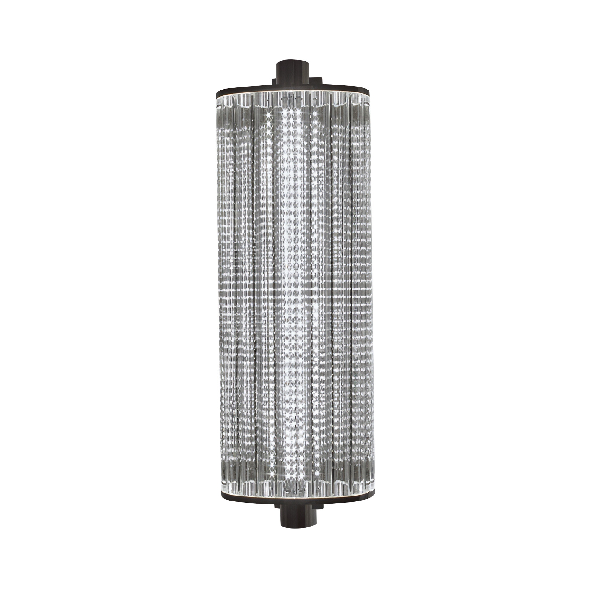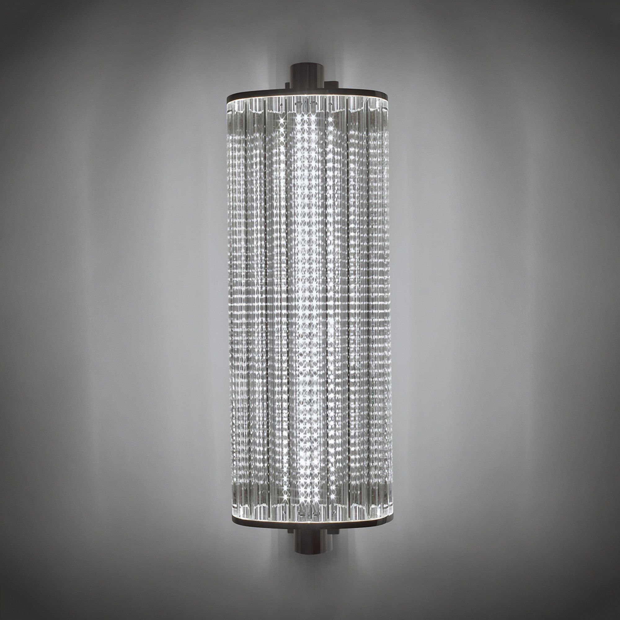 ex-Tr wall lamp made of chromed steel and transparent and sandblasted borosilicate extruded glass. Available in transparent and satin finishes, the ex-Tr wall lamp stands out for its transparent ribbed extruded glass, which multiplies the light of the LED strips. The lamp creates a cheerful, playful and multifaceted light effect, which illuminates the space with an intense and functional light. The lamp has a painted metal structure, available in different colours, which supports the glass with a cable adjustable in length. ex-Tr is a wall lamp that furnishes any environment with style and personality, thanks to its original and refined shape. Designed by Franco Raggi for Firmamento Milano.