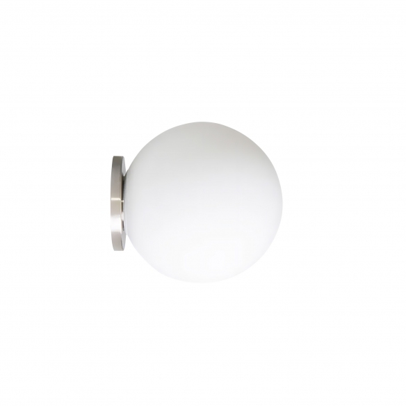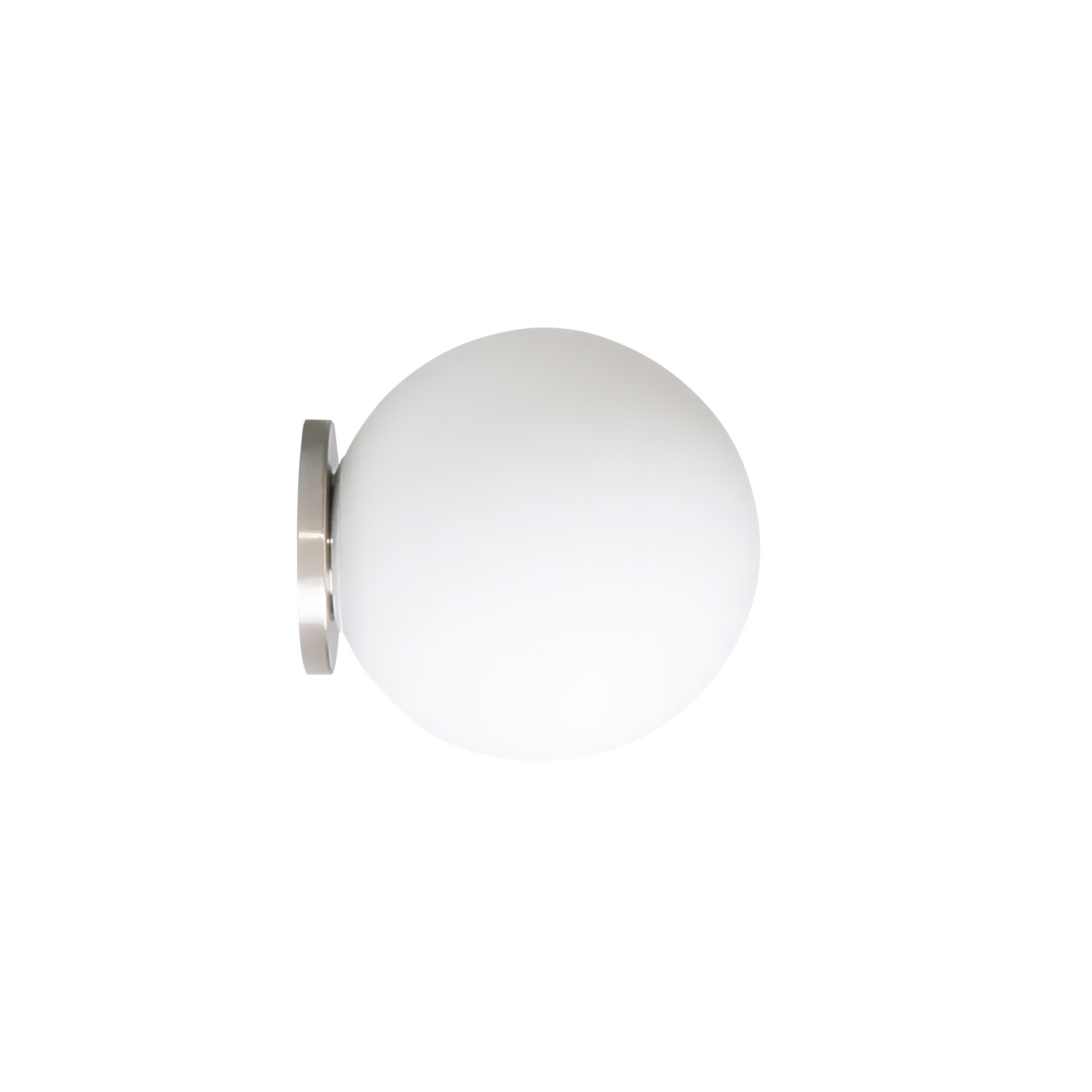 Pallina wall lamp made with galvanized metal frame and opal satin blown glass diffuser. Available in 4 colours, the Pallina wall lamp celebrates simplicity and elegance through essential design and perfection of shapes. This piece proves to be a must-have in the collection, designed to enrich every corner of the home with its discreet yet sophisticated presence. With Pallina, Fontana Arte pays homage to the scenography of the Italian golden age and the Broadway theater of the 1940s and 1950s. The design echoes the iconicity of that era, when simple but serial lights and groups of luminous spheres were distinctive elements in large shows. The dimmable functionality allows you to adjust the light intensity of Pallina according to individual preferences or the needs of the moment, making it extremely versatile and suitable for creating the desired atmosphere. A true jewel of light for those seeking uncompromising simplicity and elegance. Light source 1x max 6W G9. Designed by FontanaArte Design Lab.