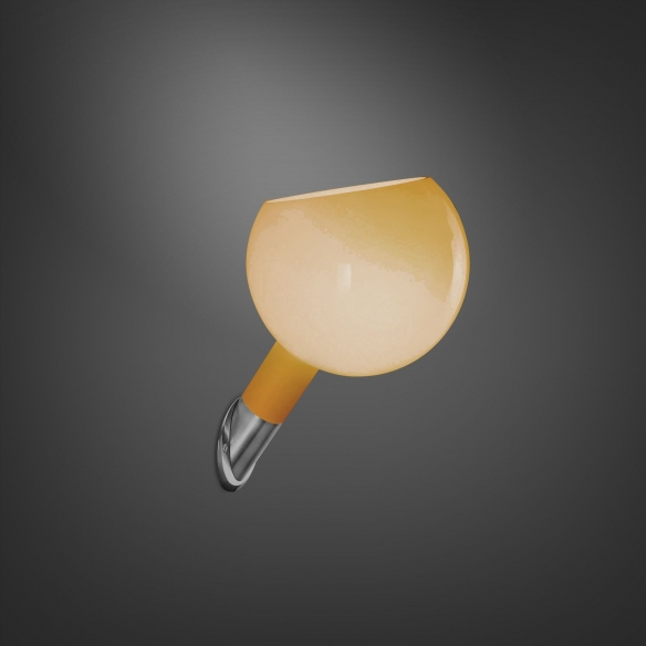 Parola wall lamp made with diffuser in polished blown glass colored in paste, wall support in nickel-plated brass metal. Available in 2 colours, the Parola wall lamp is a design masterpiece created by the collaboration between Gae Aulenti and Piero Castiglioni in 1980. Through the elegant shapes and luxurious glass, Parola majestically mixes craftsmanship and industrial production in a single object. The bright and colorful diffuser in polished blown glass, the standout element of the lamp, emanates a diffused and welcoming light, making Parola a perfect complement to any room. The nickel-plated brass metal wall mount adds a sophisticated industrial note to the design, providing a balanced contrast with the softness of the glass diffuser. Light source 1x max 46W E14. Designed by Gae Aulenti and Piero Castiglioni for Fontana Arte.
