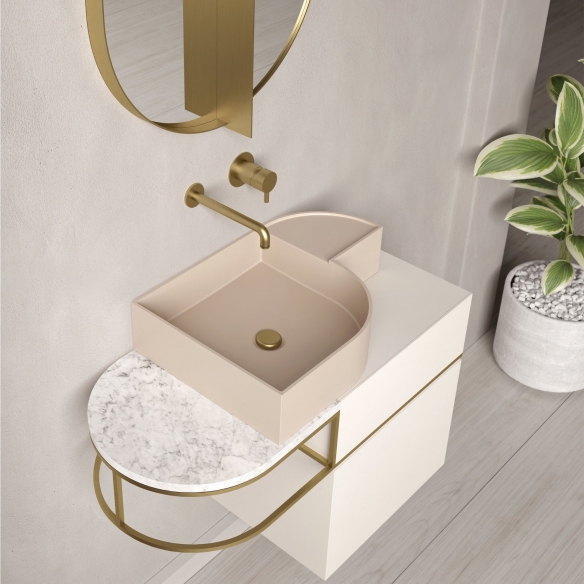 The Nouveau countertop basin with soap dish has been crafted by Ex.t in LivingTec®, a resistant, non-toxic, hypoallergenic, and fireproof material, developed to meet the highest standards of quality and technology, all while respecting the environment. This countertop basin draws inspiration from the Art Deco movement of the early 20th century and stands as a true symbol of design and comfort in the bathroom furnishings scene, an icon that easily and elegantly fits into any living space: whether it's placed inside a modern, minimalist, or traditional bathroom, Nouveau embodies the values of beauty, practicality, and innovation. The surface is homogeneous, non-porous, and highly functional. The material does not yellow over time, withstands UV rays and daily wear and tear. It is also easy to repair in case of scratches and abrasions, eco-sustainable, and fully recyclable. Create your own oasis of relaxation and well-being with Nouveau. Do not let the chance to have this piece of furniture in your apartment slip away. Designed by Bernhardt & Vella for Ex.t.