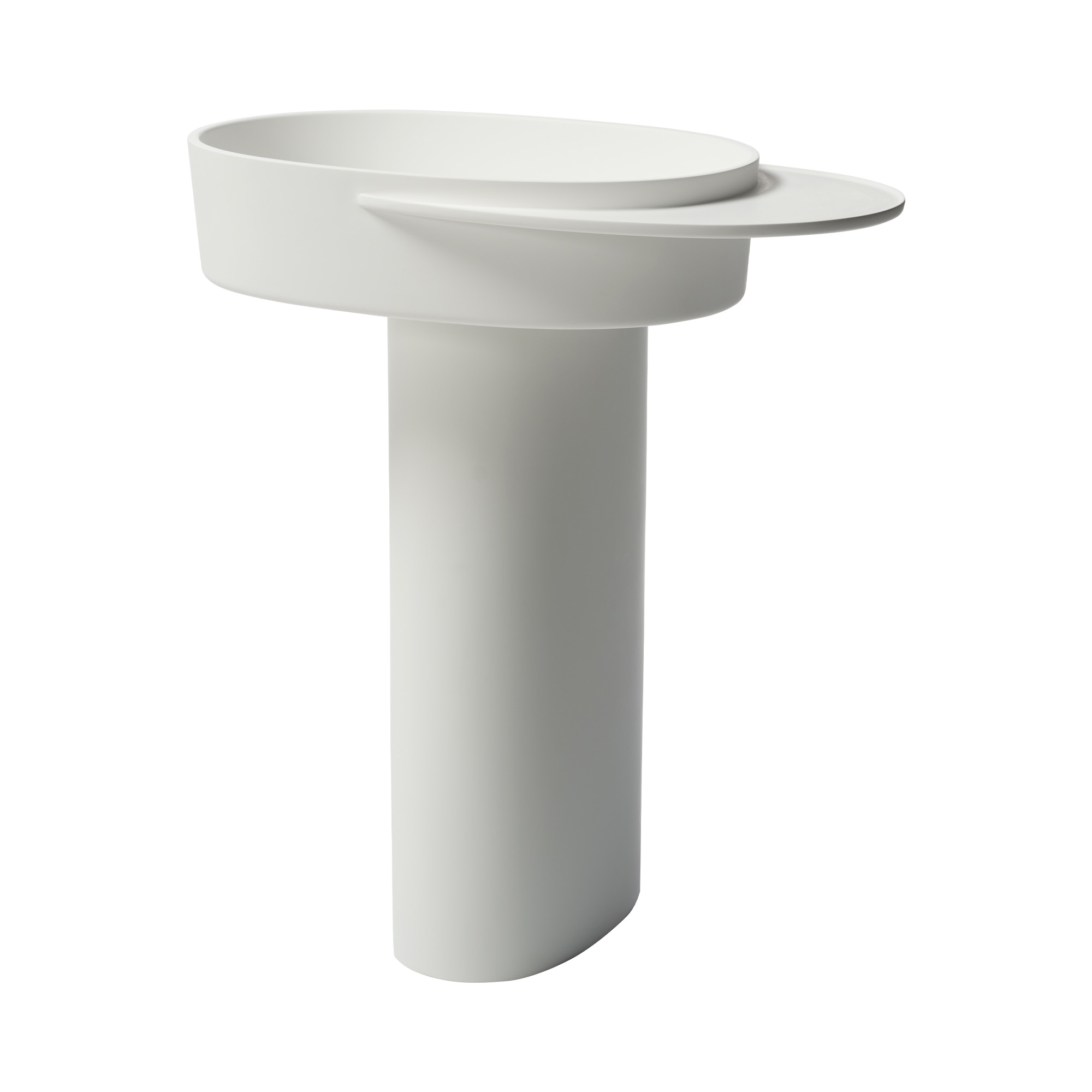 The Plateau Oval basin, complete with column and right-hand shelf, is a bathroom furniture product crafted by Ex.t using LivingTec®, a composite material specially developed to meet the highest standards of quality, technology, and environmental sustainability. This basin features a minimalist design that seamlessly integrates into any setting; whether placed in a modern, traditional, or contemporary style bathroom, the Plateau Oval captures attention and sparks conversation, merging style, innovation, and functionality that distinguishes the entire collection. Its soft and gentle silhouette perfectly sits atop a column that adds an extra touch of class. The integrated shelf on the right provides an ideal space-saving solution for organizing essential bathroom products like cosmetics and towels, keeping the area tidy and clean. Bring this jewel of design into your bathroom. Purchase the Plateau Oval basin complete with column and shelf on the right here, at Newpop.it. Designed by Sebastian Herkner for Ex.t.