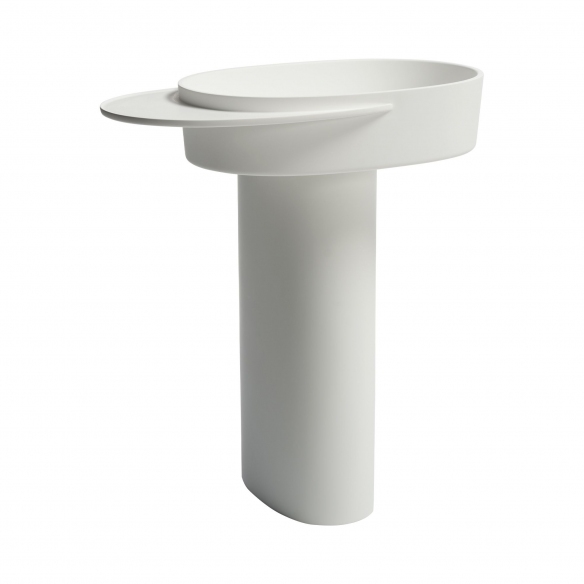 The Plateau Oval basin, complete with a column and a shelf on the left, is a bathroom furnishing product created by Ex.t in LivingTec®, a composite material specifically developed to meet the highest standards of quality, technology, and environmental sustainability. This washbasin is available in two exquisite colors and features a minimalist design that seamlessly integrates into any setting—be it a modern, traditional, or contemporary style bathroom, the Plateau Oval captures attention and sparks conversations, combining style, innovation, and functionality that distinguishes the entire collection. Its soft and gentle silhouette fits perfectly atop a pedestal that adds an extra touch of class. Meanwhile, the integrated shelf on the left offers an ideal space-saving solution for organizing essential bathroom products such as cosmetics and towels, keeping the area tidy and clean. Bring this jewel of design into your bathroom. Purchase your own Plateau Oval basin complete with column and left-sided shelf right here, on Newpop.it. Designed by Sebastian Herkner for Ex.t.