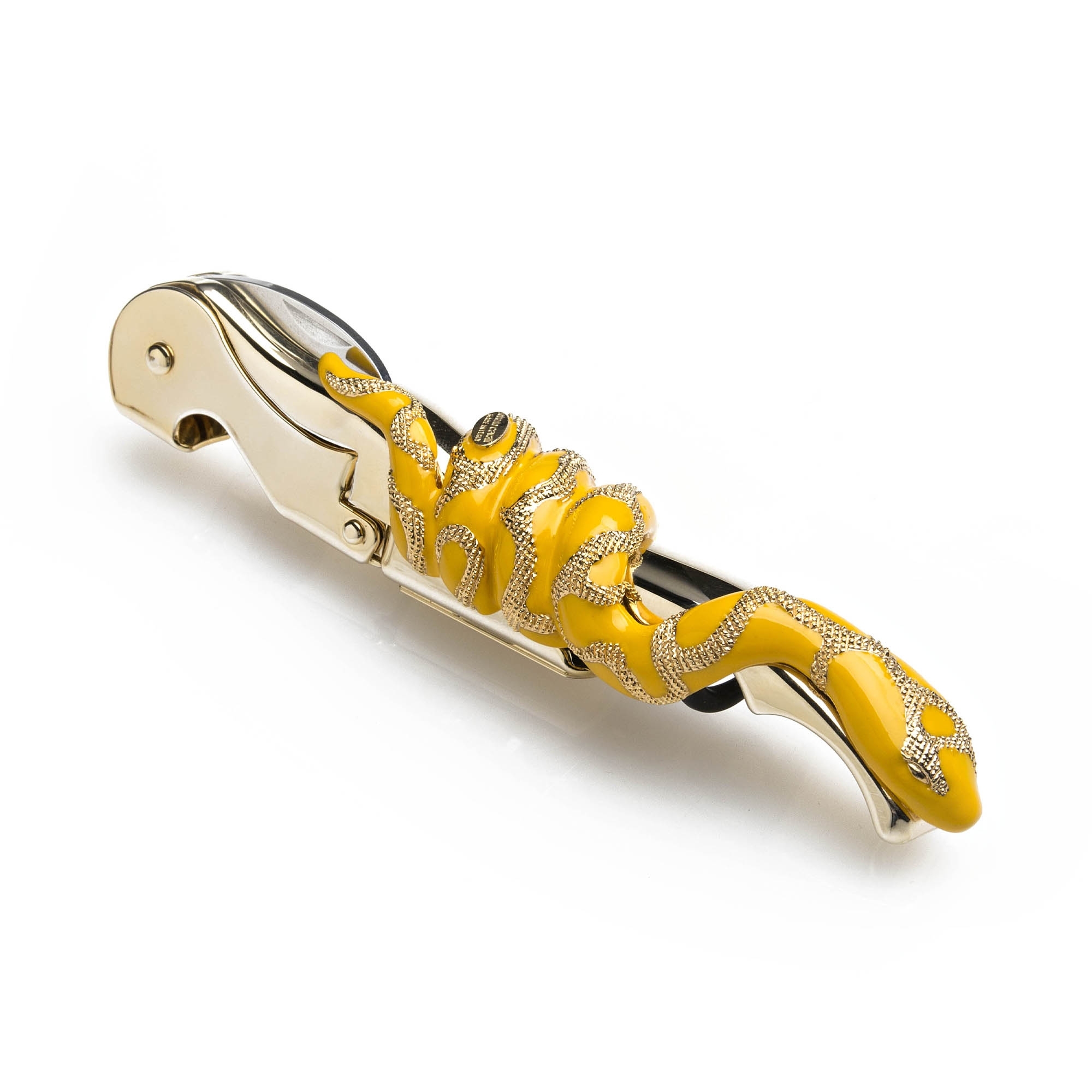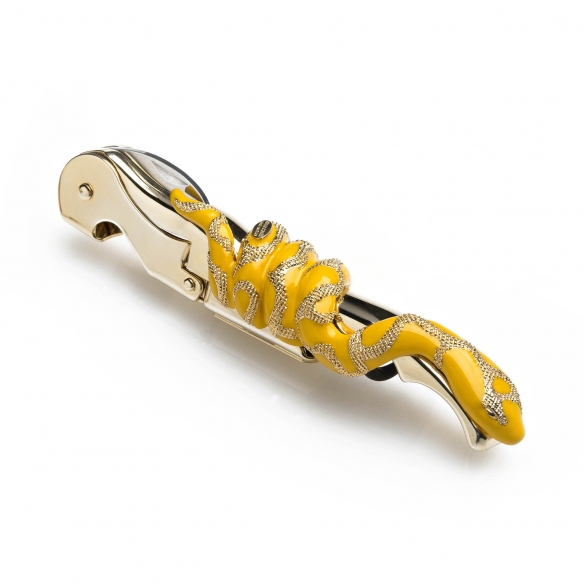 Il cavatappi Snake è un lussuoso accessorio per la tua cucina realizzato da Roberto Cavalli interamente in metallo di altissima qualità, materiale che assicura resistenza ed eleganza. Disponibile in varie colorazioni e adornato da un imponente serpente, questo cavatappi ha un design audace e raffinato, e non è un semplice apribottiglie, ma un vero e proprio pezzo che cattura lo sguardo con la sua forma sinuosa e robusta. La sua struttura offre una presa comoda e confortevole; Snake è stato progettato per affrontare con facilità anche i tappi più ostinati, risparmiando all'utente lo sforzo spesso associato all'apertura delle bottiglie di vino. Un regalo ideale per gli amanti del vino o un acquisto da collezionista per gli appassionati del marchio Cavalli, questo cavatappi è uno strumento, un'esperienza da possedere e apprezzare nel tempo. Perfetto per essere collocato all'interno di una collezione, sopra una mensola oppure utilizzato durante una cena elegante, Snake sarà sempre al centro dell'attenzione. Acquista anche tu questo meraviglioso cavatappi proprio qui, su Newpop.it!
