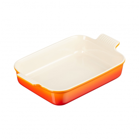 Pirofila rettangolare Tradition. Realizzata in gres vetrificato, la pirofila Tradition è disponibile in una selezione di 10 colori esclusivi. Pratica e versatile, questa splendida pirofila coniuga perfettamente nuances accattivanti e funzionalità sorprendenti. Elegante e maneggevole, grazie alla forma semplice, le superfici lisce e i pratici manici sporgenti. Ideale per ricette sane e senza aggiunta di grassi, la superficie interna liscia, oltre ad impedire ai tuoi cibi di attaccarsi alla base, contribuisce a rendere questo delizioso accessorio da cucina facile da pulire e resistente alle usure. Lo speciale materiale utilizzato per la realizzazione dell'oggetto permette una graduale e lenta distribuzione del calore, rendendolo perfetto per tutte le cotture in forno, anche per quelle più lunghe. Bella e colorata, la pirofila si presta facilmente ad essere usata per servire in tavola. Grazie al suo design classico e lineare, la splendida pirofila, firmata Le Creuset, porterà un tocco di eleganza senza tempo alla tua tavola.  Un modo pratico e versatile per servire le tue creazioni preferite. Scopri la vasta gamma di prodotti Le Creuset qui, su Newpop!