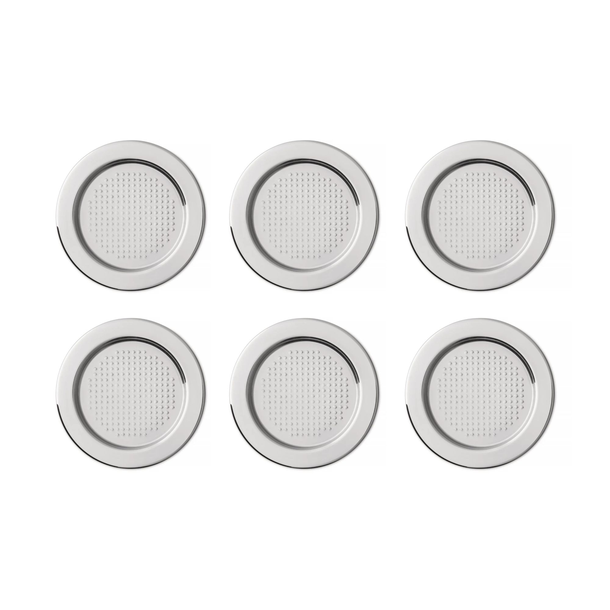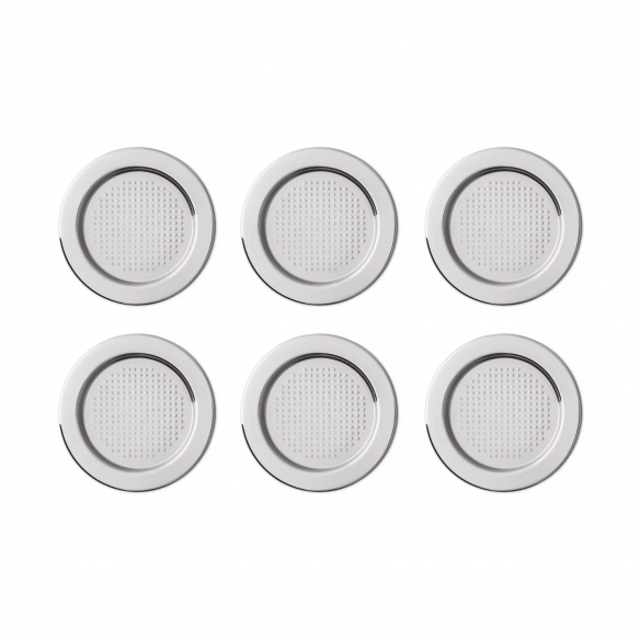 Il set di 6 sottobicchieri 5009 rappresentano un ottimo esempio di stile; realizzato da Alessi in acciaio satinato con bordo lucido, questo set migliora la mise en place rendendo il tutto più elegante e raffinato. Grazie al materiale di alta qualità, i sottobicchieri sono facili da pulire e di resistere all'usura quotidiana, mantenendo il loro splendore col passare del tempo. Dotati di un diametro che li rende adatti a bicchieri di diverse dimensioni, questi sottobicchieri proteggono le superfici dai segni degli aloni di condensa, mantenendo i mobili sempre in perfette condizioni. Quando non vengono utilizzati, i sottobicchieri possono essere impilati uno sopra l'altro, occupando il minimo spazio nella credenza o nel cassetto. Disegnati da Ettore Sottsass per Alessi.