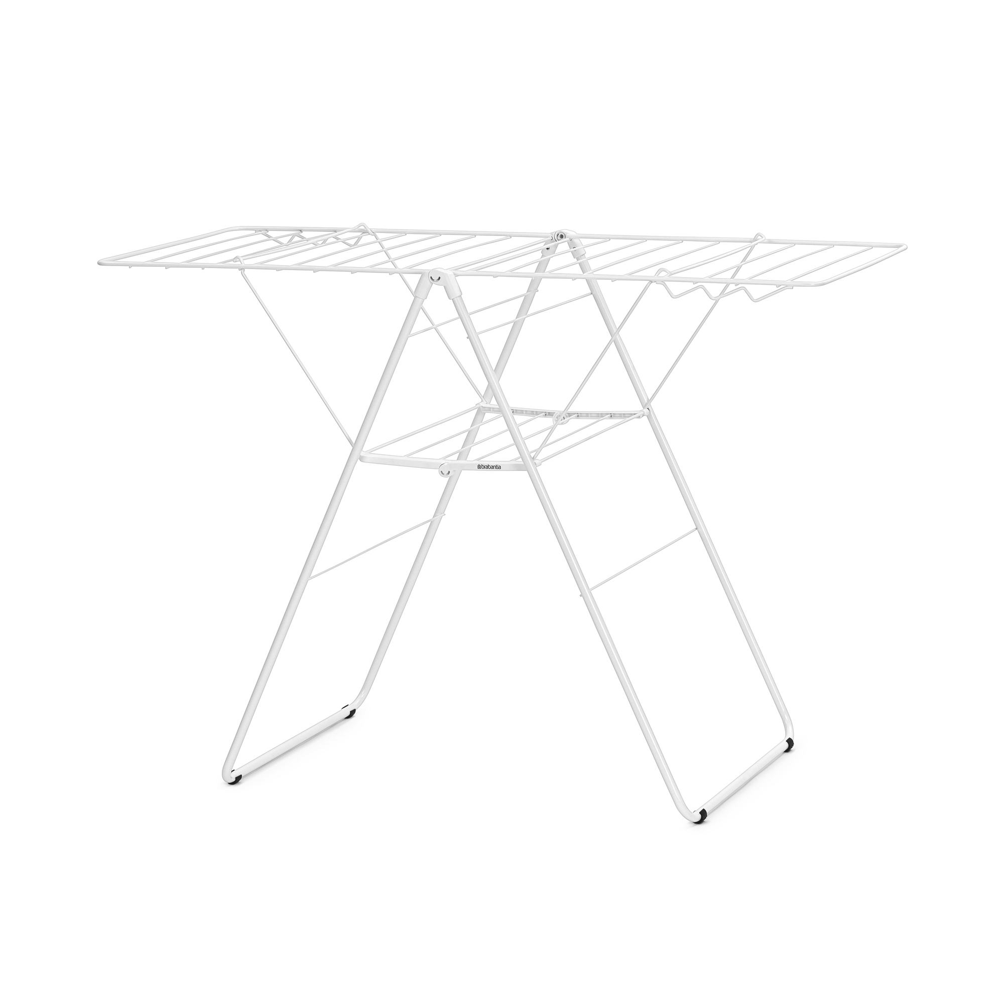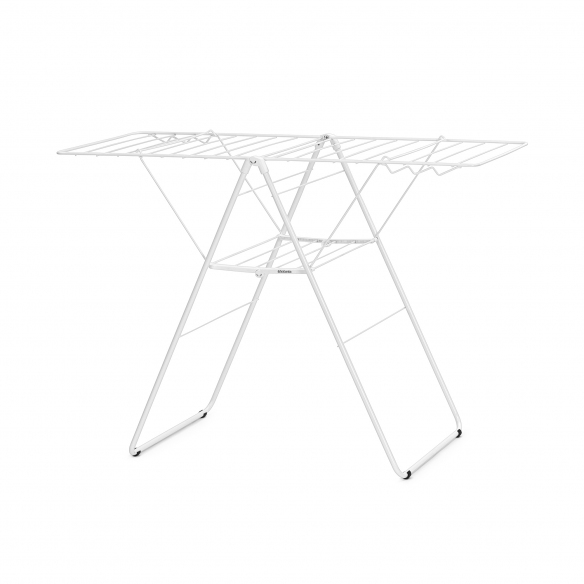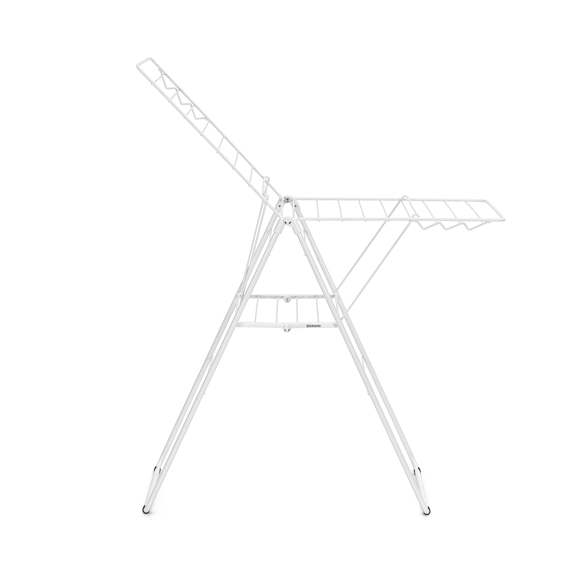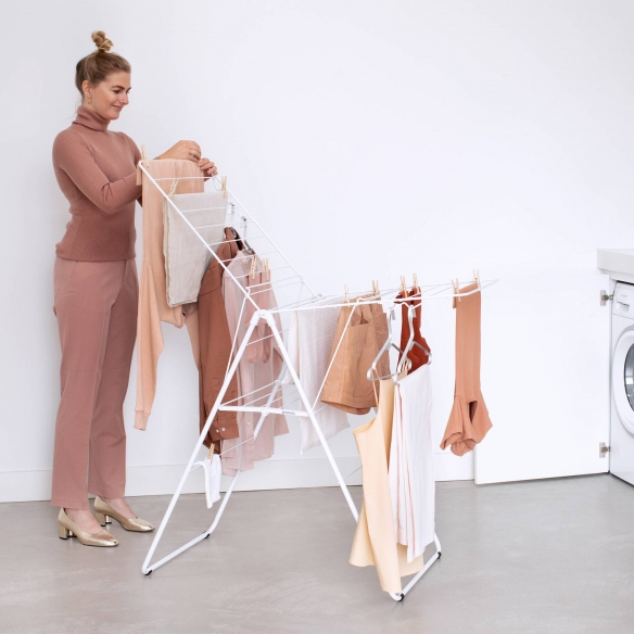 Stendibiancheria della collezione HangOn, dalla lunghezza di 20 metri, realizzato in metallo resistente. Disponibile in 3 finiture di colore, HangOn è un accessorio immancabile nella tua casa: è leggero, pratico, compatto e sfrutta lo spazio in modo intelligente! Può accogliere fino a 3 carichi di bucato e l'altezza delle ali è regolabile! Le dimensioni rimangono contenute, sia una volta ripiegato sia quando chiuso. I piedini di protezione robusti evitano di rovinare il pavimento e garantiscono grande stabilità. Lo stendino per eccellenza! Progettato e realizzato da Brabantia.