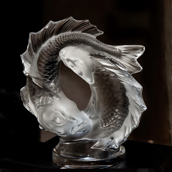 La scultura 2 Poissons di Lalique è un'opera d'arte di raffinata eleganza e simbolismo, ispirata alla carpa Koi, spesso associata a ricchezza e perseveranza. Creato nel 1953 dall'artista Marc Lalique, il motivo 2 Poissons è una rappresentazione di due carpe che emergono dall'acqua, creando un movimento che ricorda l'infinito e una danza eterna. Disponibile in due diverse misure, questa scultura conserva l'essenza e l'eleganza del design originale, raffigurando le carpe Koi in modo realistico: dalla forma del corpo alle scaglie finemente scolpite. L'uso emblematico di Lalique del cristallo satinato e rilucidato conferisce un'eccezionale lucentezza che mette in risalto la maestria artistica e il dettaglio minuzioso. La scultura 2 Poissons è un vero tributo alla maestria della lavorazione del vetro e alla creatività che caratterizza l'arte di Lalique, mentre conserva la tradizione della celebrazione della natura e delle sue creature. Perfetta come pezzo di collezione o come elemento decorativo, questa scultura in cristallo è un omaggio alla bellezza delle carpe Koi e un simbolo duraturo di ricchezza e perseveranza.