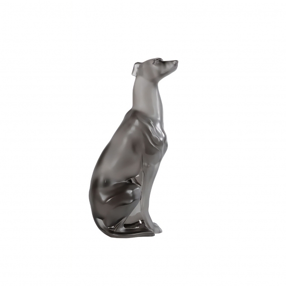 Scultura Lévrier nella finitura "Gris" realizzata in cristallo. Omaggio alla grazia e all'eleganza del levriero, simbolo di lealtà e fedeltà, la scultura Lévrier presenta delle linee slanciate e dei dettagli delicati, riproducendo il levriero nel pieno della sua bellezza dinamica. La raffigurazione del levriero da parte di Lalique cattura l'essenza di questo nobile cane, evocando la sua agilità e velocità diventate un emblema nella storia dell'arte. Realizzata da Lalique.
