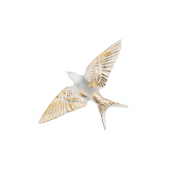 Lalique Scultura in cristallo da parete Hirondelle Incolore Tamponné Or
