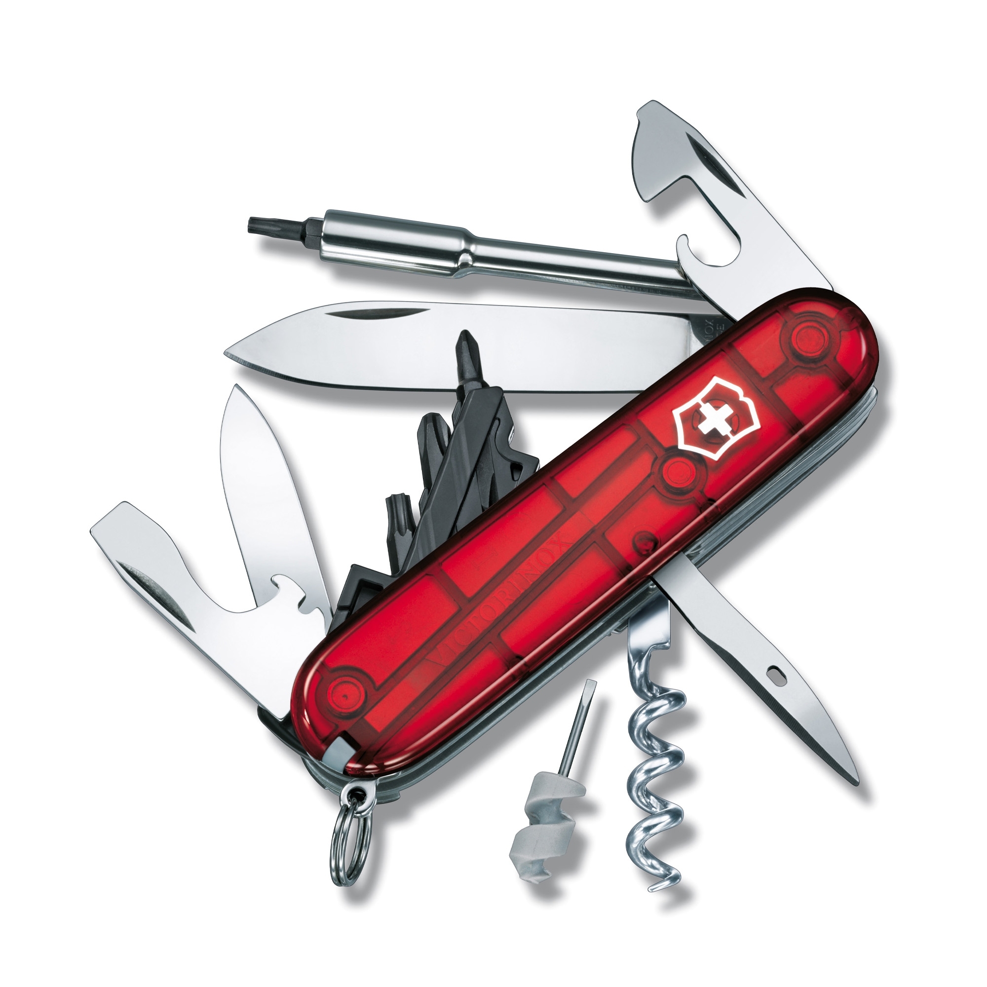 Coltello Multiuso Cybertool 29 Ruby, realizzato in ABS/Cellidor da Victorinox. Questo coltello multiuso è un fondamentale accessorio per chiunque necessiti di un multi-tool affidabile e funzionale che possa assistere in una varietà di contesti tecnologici e quotidiani. L'impugnatura del coltello è confortevole, stabile e pratica. Questo accessorio incorpora ben 27 diverse funzioni, rendendolo un connubio perfetto di stile, innovazione e praticità. Nonostante la sua struttura robusta, il coltello Multiuso Cybertool 29 Ruby vanta un profilo sottile, che lo rende perfetto da tenere in tasca o da esporre nella propria collezione personale. Regalo ideale per collezionisti e amanti di lavori fai da te, acquistalo proprio qui, su Newpop.it!