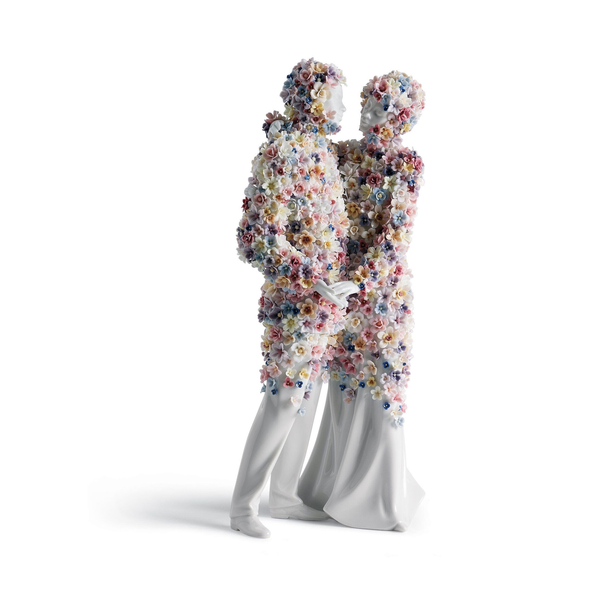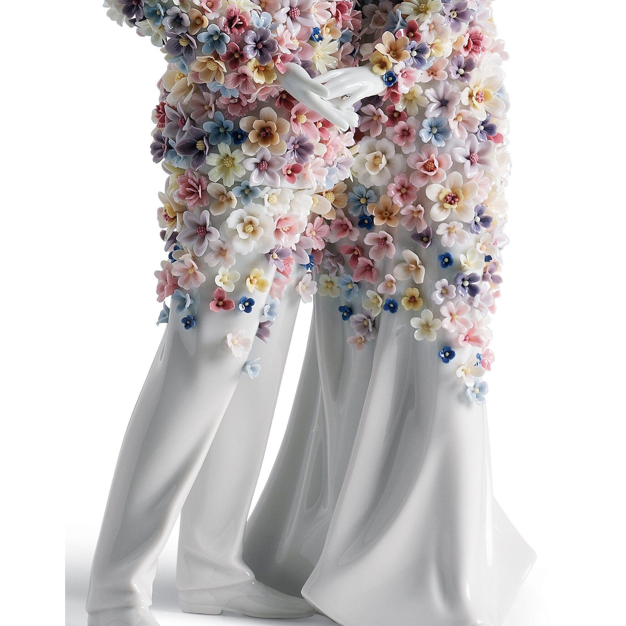 La scultura Coppia Amore III è un'opera che incarna la delicatezza, l'affetto e il legame che c'è tra due amanti, realizzata da Lladró interamente in porcellana lucida bianca, materiale ammirato perché garantisce eleganza e durabilità. Questa magnifica scultura raffigura una coppia abbracciata, e porta con sé il concetto di amore eterno e di complicità incommensurabile; il bianco della porcellana è il simbolo dell'innocenza e della purezza dell'amore; invece, i fiori colorati rappresentano la vivacità e la felicità di queste due persone quando sono insieme. Coppia Amore III è una fantastica aggiunta per la casa o per un ufficio commerciale, promettendo di arricchire tutti gli spazi in maniera unica e ineguagliabile. I dettagli sono curati con estrema precisione, come i vestiti della coppia che sembrano alzarsi con la brezza leggera del vento. La scultura Coppia Amore III è un regalo ideale per tutti gli appassionati dell'arte, oppure per occasioni speciali come inaugurazioni e matrimoni. Questo pezzo non è solo un'opera d'arte ma anche una testimonianza dell'emozione condivisa e della narrativa senza tempo dell'amore. Disegnato da Committee e scolpito da Marco Antonio Noguerón per Lladró.