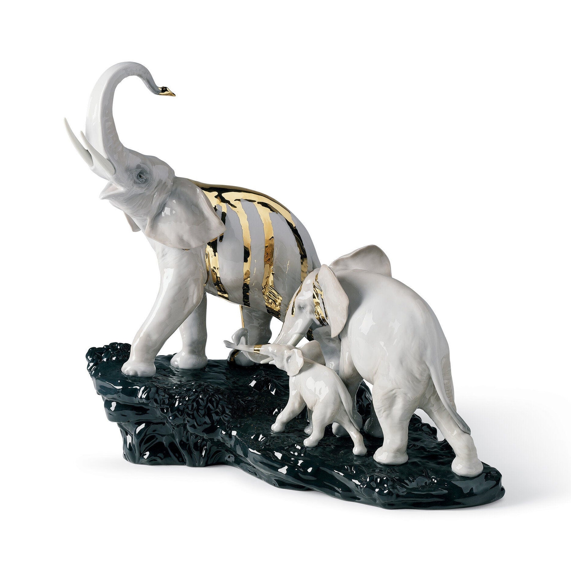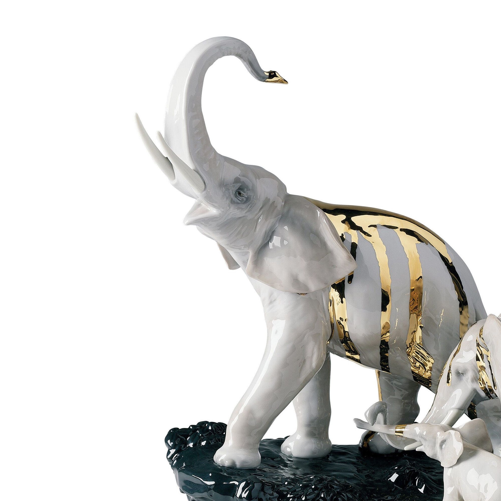 Lladró Figurina Celebrazione - Elefanti su roccia nera