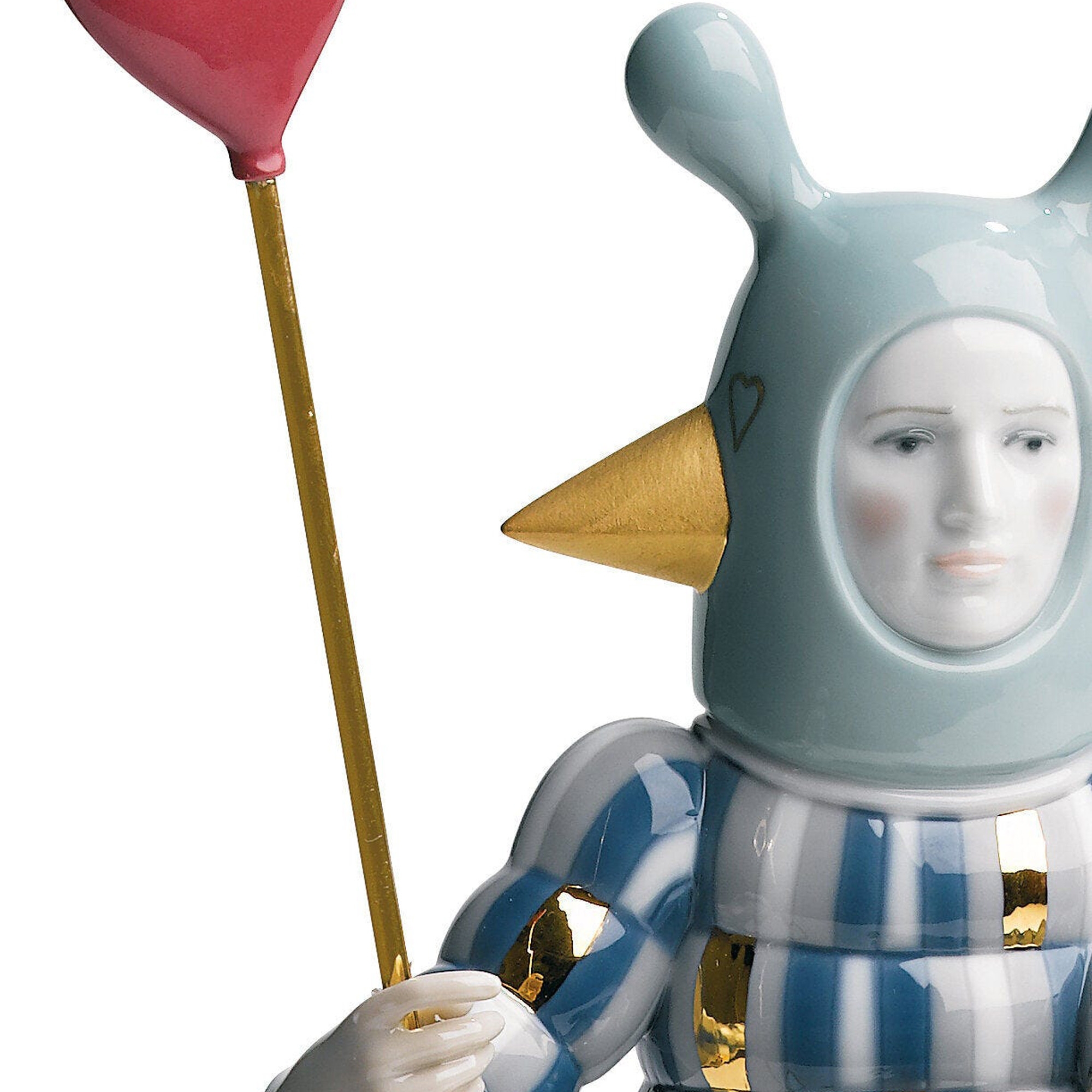 La figurina The Lover III rappresenta una straordinaria fusione tra artigianato tradizionale e audace design contemporaneo, realizzata da Lladró interamente in porcellana lucida, materiale che promette resistenza e longevità, decorato con dettagli in oro che fanno risaltare il rosso del cuore e delle scarpe. Questa deliziosa statuetta ha un design divertente e innovativo, e nasce dalla fusione di un classico tema di Lladró, ovvero amore e giocosità; questa opera in particolare rappresenta un amante dall'aspetto elegante e spensierato. La posizione del personaggio e gli accessori che porta con sé aggiungono un ulteriore livello di narrazione, invitando l'osservatore a riflettere sulle molteplici sfaccettature dell'amore. Grazie ai suoi colori e al suo stile, The Lover III si sposa armoniosamente con qualsiasi ambiente e stile di arredamento: può essere collocato in una casa o in un ufficio commerciale, in una camera da letto dal design classico o in un soggiorno minimalista. Quest'opera rappresenta un omaggio all'amore attraverso gli occhi del designer, donando una visione unica che arricchisce la collezione di ogni amante dell'arte. Disegnata da Jaime Hayon e scolpito da Marco Antonio Noguerón per Lladró.