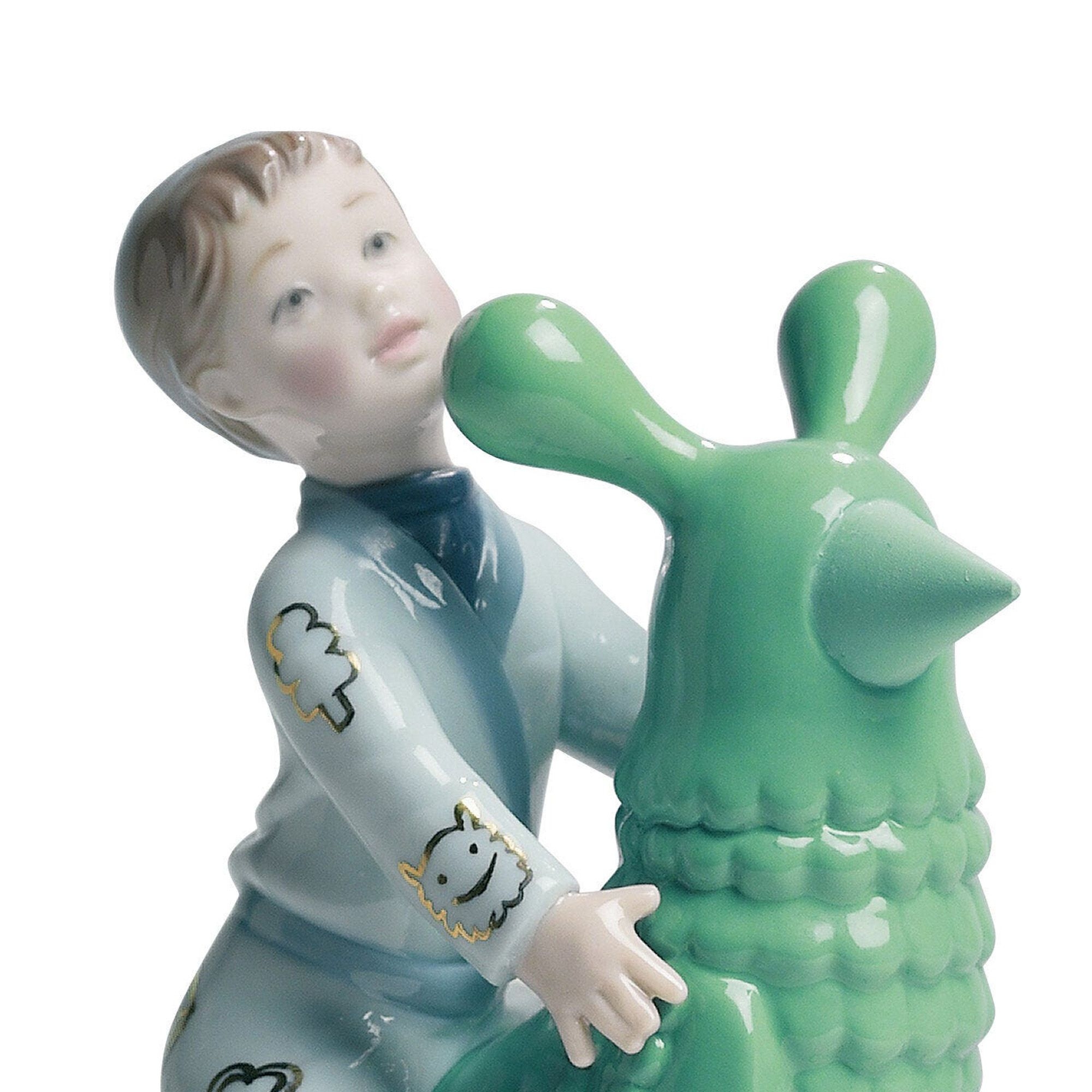 La figurina The Rocking Chicken Ride è una creazione affascinante e dolce realizzata da Lladró interamente in porcellana lucida, materiale che promette resisteza e longevità, decorata con principalmente il colore verde e con alcuni dettagli in oro. Questa deliziosa figurina ha un design moderno senza eguali, e nasce dalla fusione di un classico tema di Lladró, ovvero amore e giocosità; rappresenta un bambino che gioca con una simpatica sedia a dondolo a forma di pollo e mostra l'aspetto divertente, pieno di ironia che caratterizza l'intera collezione. Con dimensioni adatte all'esposizione sugli scaffali o come centrotavola nelle camerette dei bambini, The Rocking Chicken Ride non è solo un oggetto decorativo ma un simbolo di momenti gioiosi e piaceri semplici. Inoltre, questa particolare statuetta è amata per la sua capacità di evocare ricordi di emozioni dell'infanzia e per la sua capacità di fungere da bellissimo regalo o pezzo da collezione. Disegnato da Jaime Hayon e scolpito da Raul Rubio per Lladró.