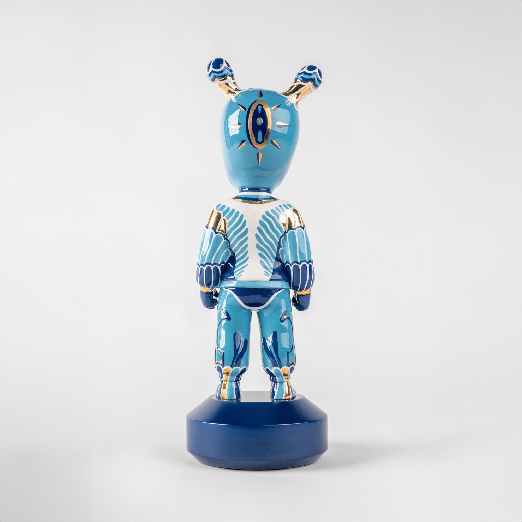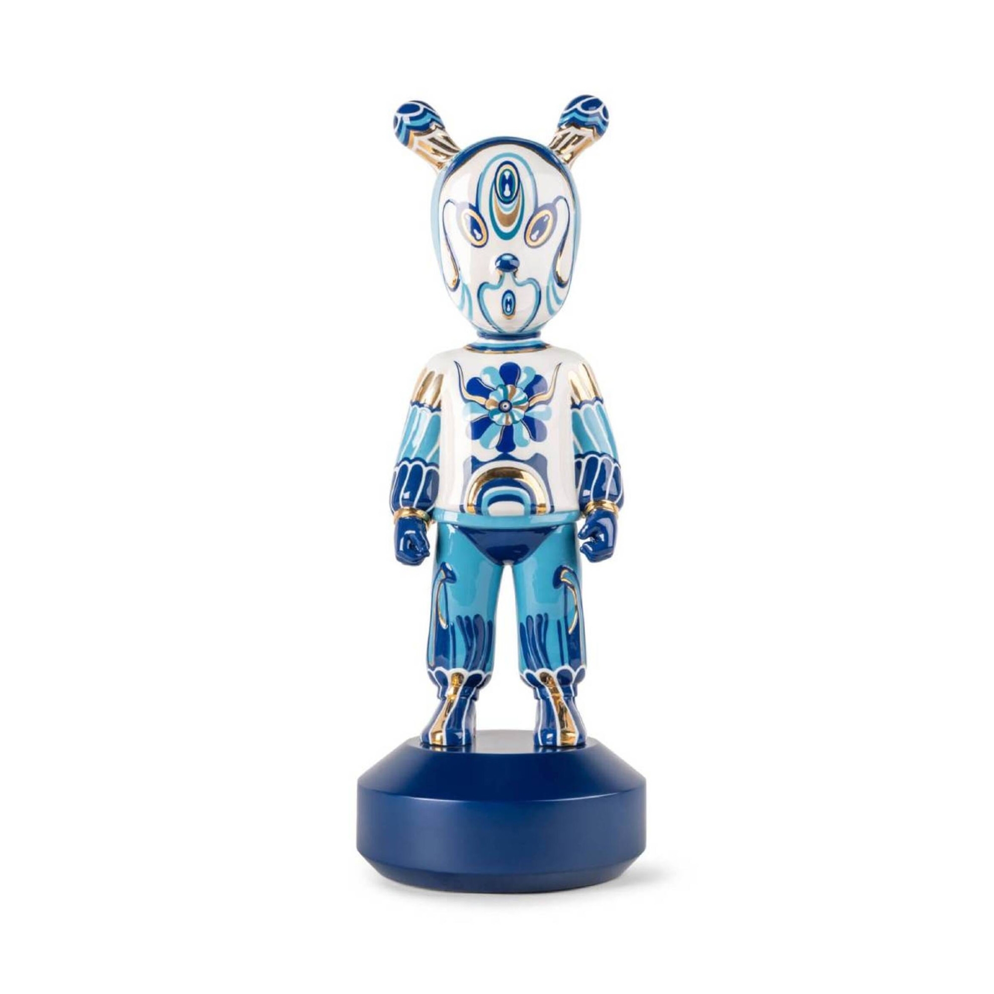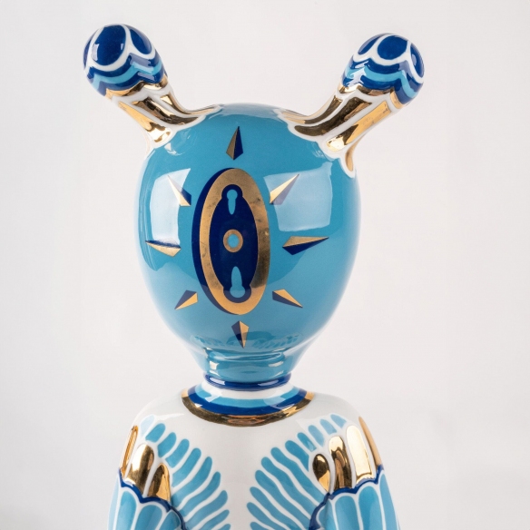 La scultura The Guest by Kzeng Jiang, serie limitata, modello grande, è una fantastica e simpatica opera d'arte realizzata da Lladró interamente in porcellana lucida, in varie tonalità del blu, dorato e bianco, unita ad una base in legno blu, materiali ammirati per la loro eleganza e longevità. The Guest ha un design unico e moderno, in grado di regalare un tocco di simpatia alla tua casa e cattura la cultura orientale attraverso illustrazioni vibranti e immagini radicali; questa scultura è abbinabile a qualsiasi ambientazione e stile di arredamento: che sia posizionata all'interno di una biblioteca dal design classico, all'interno di un salotto minimalista oppure sul comodino in una camera da letto all'avanguardia, The Guest di Kzeng Jiang catturerà lo sguardo di tutti i tuoi amici e parenti. La scultura si pone come un invito al dialogo creativo e fantasioso, diventando un'icona che porta l'arte contemporanea nelle case. Il modello grande è per collezionisti e amanti dell'arte che desiderano un pezzo dal carattere forte e audace. Questo prodotto di arredamento incarna la voglia di sperimentare negli infiniti confini dell'arte della porcellana, portando sempre con sé l'inconfondibile savoir-faire di Lladró. Disegnata da Kzeng Jiang e scolpita da Raul Rubio per Lladró.