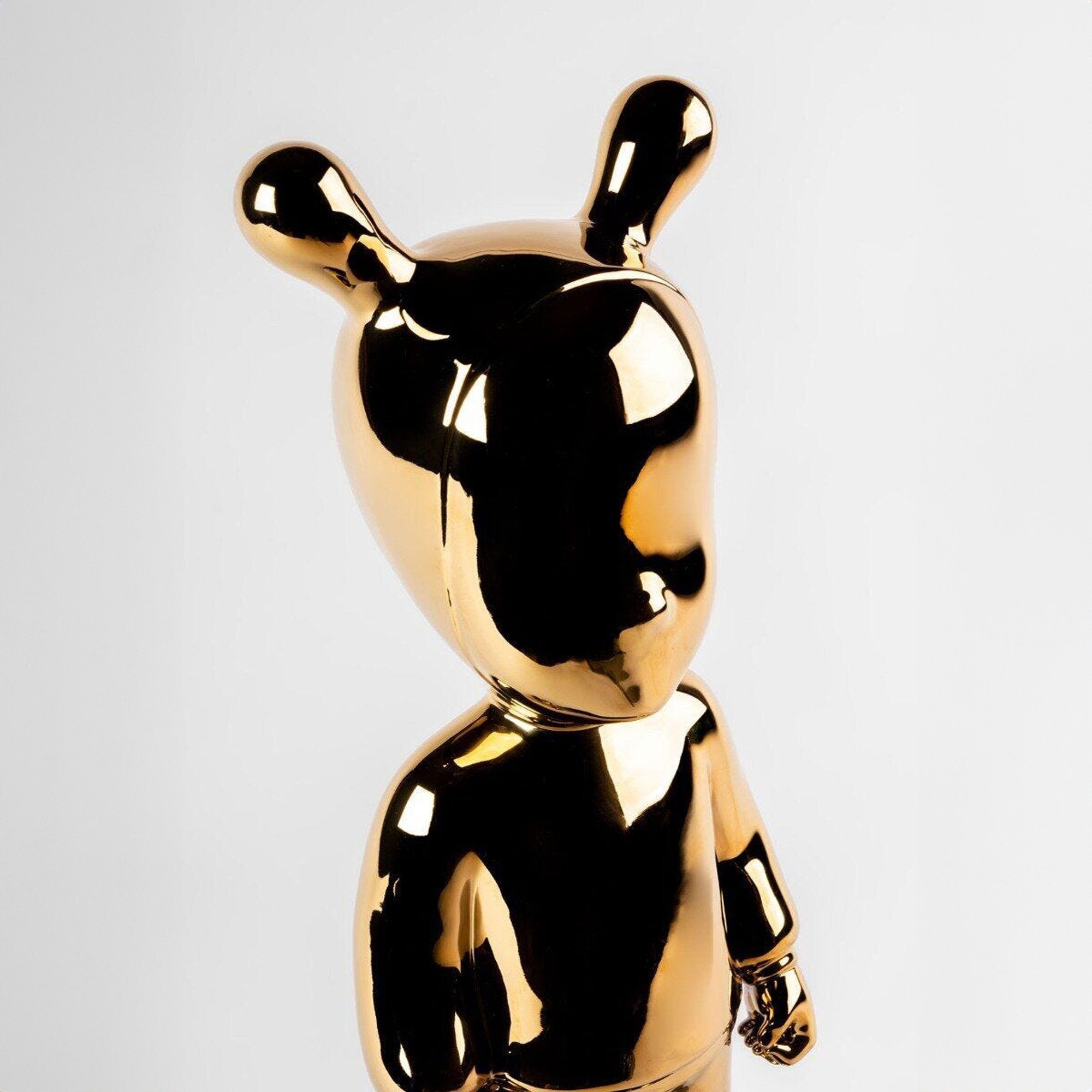 La scultura The Golden Guest, modello grande, è una fantastica e simpatica opera d'arte realizzata da Lladró interamente in porcellana lucida, materiale ammirato per la sua eleganza e longevità, completamente rifinito in oro. The Golden Guest ha un design unico e moderno, in grado di regalare un tocco di simpatia ed eleganza alla tua casa; questa statuetta è abbinabile a qualsiasi ambientazione e stile di arredamento: che sia posizionata all'interno di una biblioteca dal design classico, all'interno di un salotto minimalista oppure sul comodino in una camera da letto all'avanguardia, The Golden Guest catturerà lo sguardo di tutti i tuoi amici e parenti. Questa scultura si pone come un invito al dialogo creativo e fantasioso, diventando un'icona che porta l'arte contemporanea nelle case. Il modello grande è per collezionisti e amanti dell'arte che desiderano un pezzo dal carattere forte e audace. Questo prodotto di arredamento incarna la voglia di sperimentare negli infiniti confini dell'arte della porcellana, portando sempre con sé l'inconfondibile savoir-faire di Lladró. Disegnata da Jaime Hayon e scolpita da Raul Rubio per Lladró.