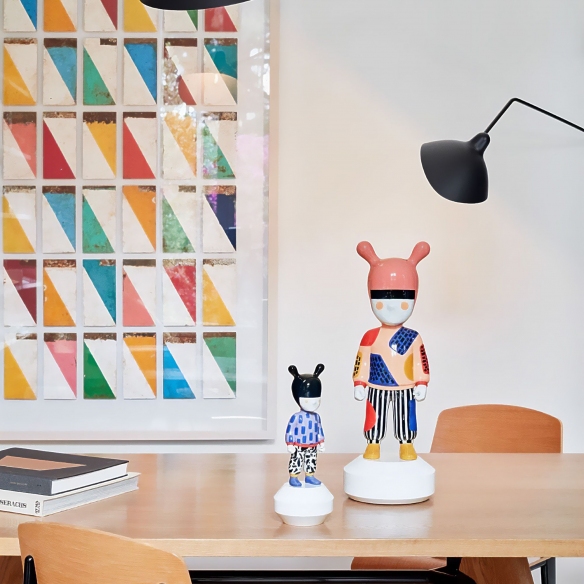 La scultura The Guest by Camille Walala, modello grande, serie limitata, è una fantastica e simpatica opera d'arte realizzata da Lladró interamente in porcellana lucida, materiale ammirato per la sua eleganza e longevità. The Guest ha un design unico e moderno, e grazie ai suoi colori vivaci e le sue forme astratte leggermente imperfette è in grado di regalare un tocco di simpatia alla tua casa; questa statuetta è abbinabile a qualsiasi ambientazione e stile di arredamento: che sia posizionata all'interno di una biblioteca dal design classico, all'interno di un salotto minimalista oppure sul comodino in una camera da letto all'avanguardia, The Guest di Camille Walala catturerà lo sguardo di tutti i tuoi amici e parenti. Questa scultura si pone come un invito al dialogo creativo e fantasioso, diventando un'icona che porta l'arte contemporanea nelle case. Il modello grande è per collezionisti e amanti dell'arte che desiderano un pezzo dal carattere forte e audace. Questo prodotto di arredamento incarna la voglia di sperimentare negli infiniti confini dell'arte della porcellana, portando sempre con sé l'inconfondibile savoir-faire di Lladró. Disegnata da Camille Walala e scolpita da Raul Rubio per Lladró.