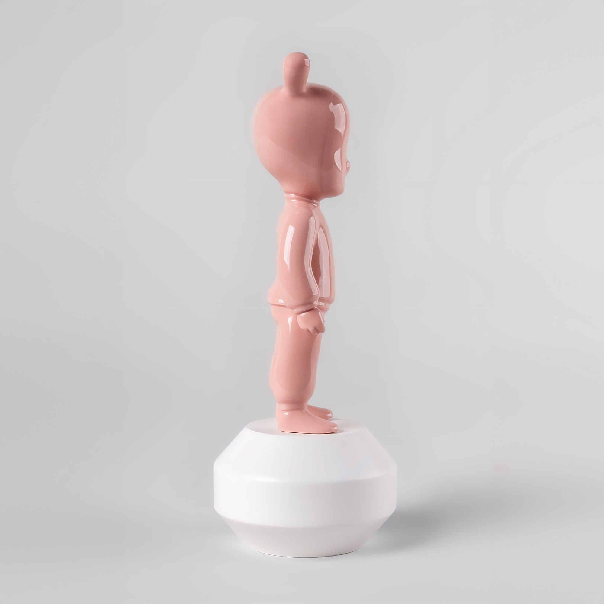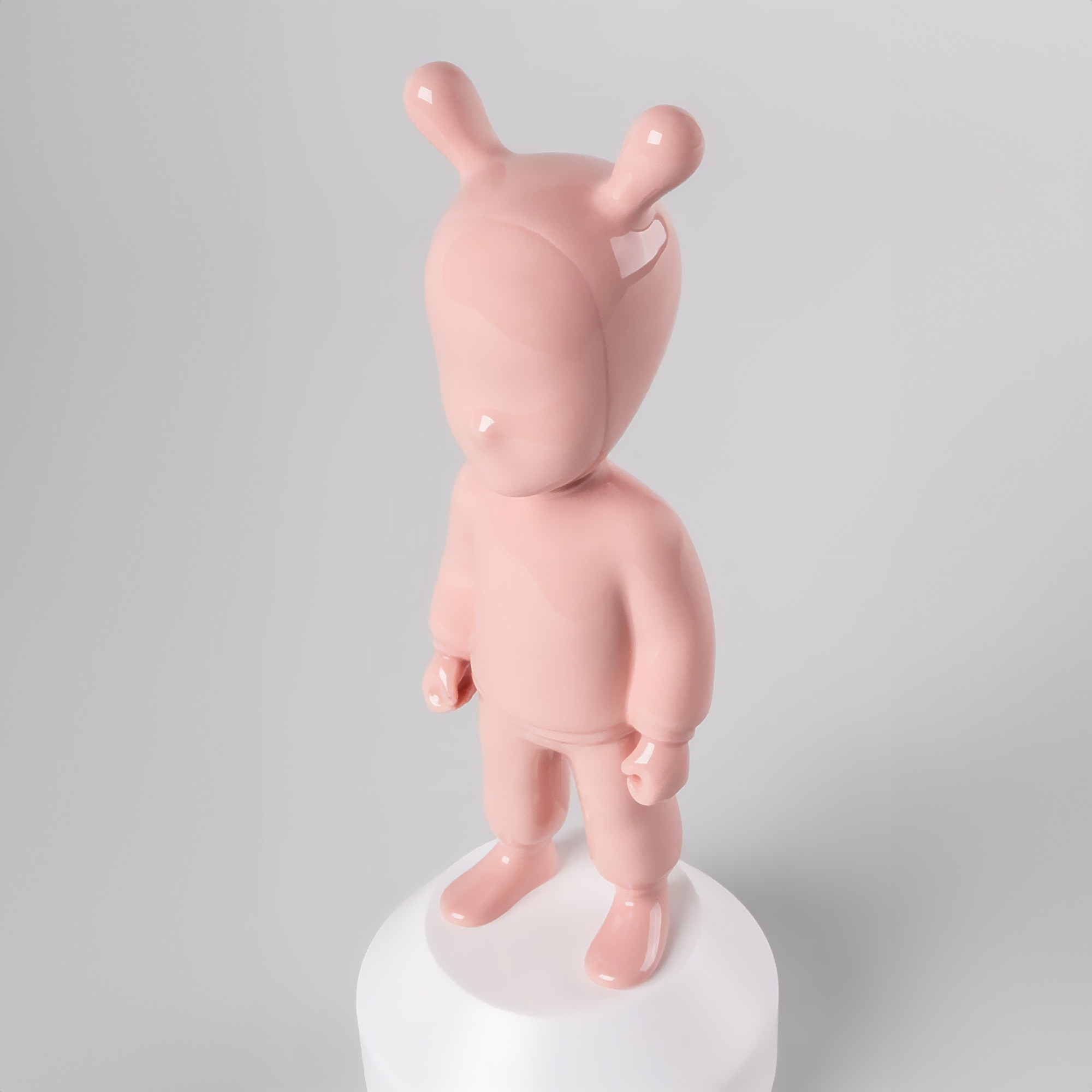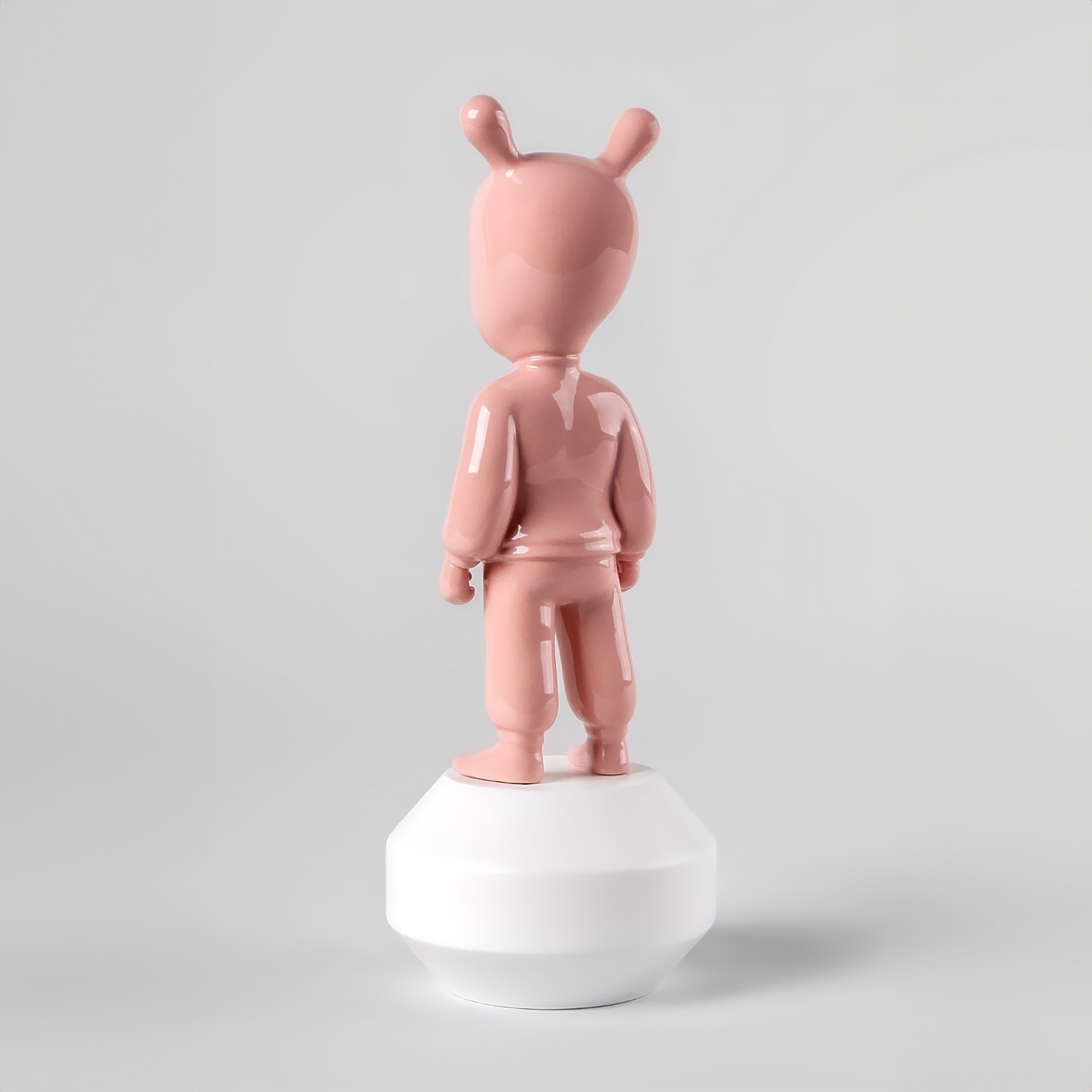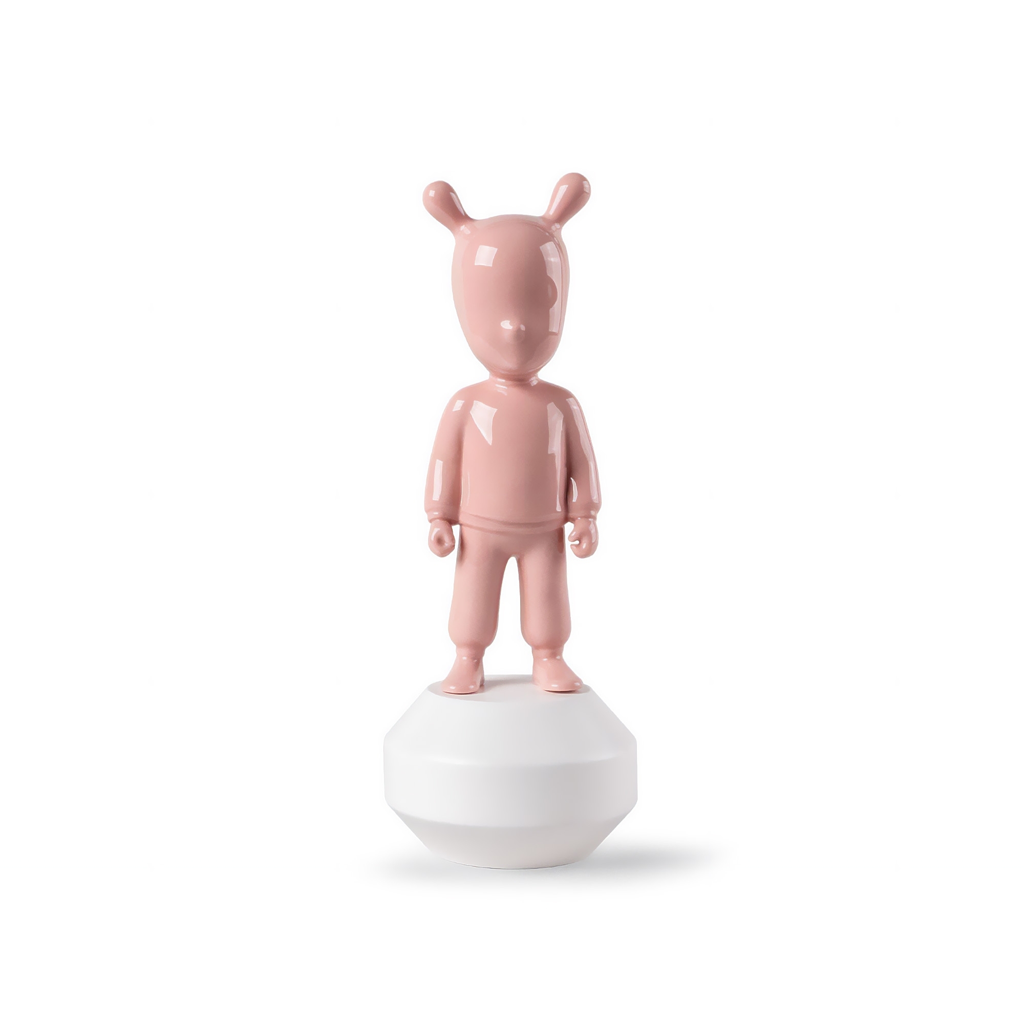 La scultura The Pink Guest, modello piccolo, è una fantastica e simpatica opera d'arte realizzata da Lladró interamente in porcellana lucida, materiale ammirato per la sua eleganza e longevità, completamente colorato in rosa. The Pink Guest ha un design unico e moderno, in grado di regalare un tocco di simpatia alla tua casa; questa statuetta è abbinabile a qualsiasi ambientazione e stile di arredamento: che sia posizionata all'interno di una biblioteca dal design classico, all'interno di un salotto minimalista oppure sul comodino in una camera da letto all'avanguardia, The Pink Guest catturerà lo sguardo di tutti i tuoi amici e parenti. Questa scultura si pone come un invito al dialogo creativo e fantasioso, diventando un'icona che porta l'arte contemporanea nelle case. Il modello piccolo è perfetto per collezionisti e amanti dell'arte che desiderano un pezzo dal carattere forte ma che si adatti anche a spazi limitati. Questo prodotto di arredamento incarna la voglia di sperimentare negli infiniti confini dell'arte della porcellana, portando sempre con sé l'inconfondibile savoir-faire di Lladró. Disegnata da Jaime Hayon e scolpita da Raul Rubio per Lladró.