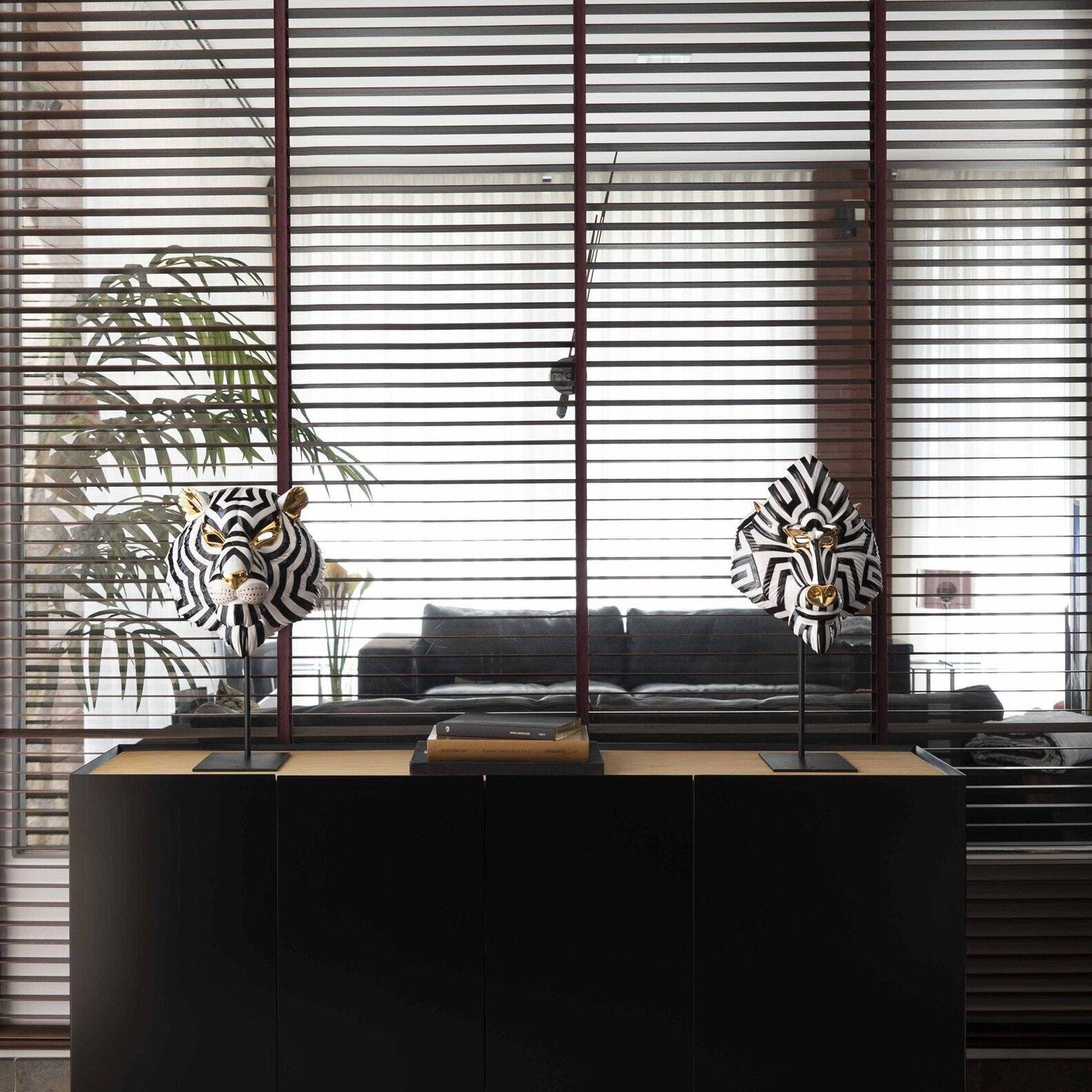 La maschera Tigre è un bellissimo esemplare di design che unisce eleganza, mistero e raffinatezza, realizzato da Lladró porcellana lucida e metallo rifinito in argento sterling placcato oro. Questa meravigliosa maschera Tigre trasmette una sensazione di forza e potenza, e il suo design audace e contemporaneo la rende abbinabile a qualsiasi ambiente e stile di arredamento: che sia posizionata in un salotto moderno o in un ufficio domestico dal design minimalista, questa maschera diverrà il punto focale delle conversazioni tra gli ospiti. Inoltre, il contrasto tra i due colori nero e oro aggiunge un livello più alto di mistero e profondità: il nero, intenso e cupo, dona alla maschera un tocco di segreto e oscurità; invece, i dettagli in oro illuminano la figura della tigre, simboleggiando così fierezza ed eleganza. Questa maschera Tigre non è solo un oggetto decorativo per la casa, bensì una vera e propria opera d'arte che illumina qualsiasi spazio della tua casa. Disegnato da José Luis Santes per Lladró.