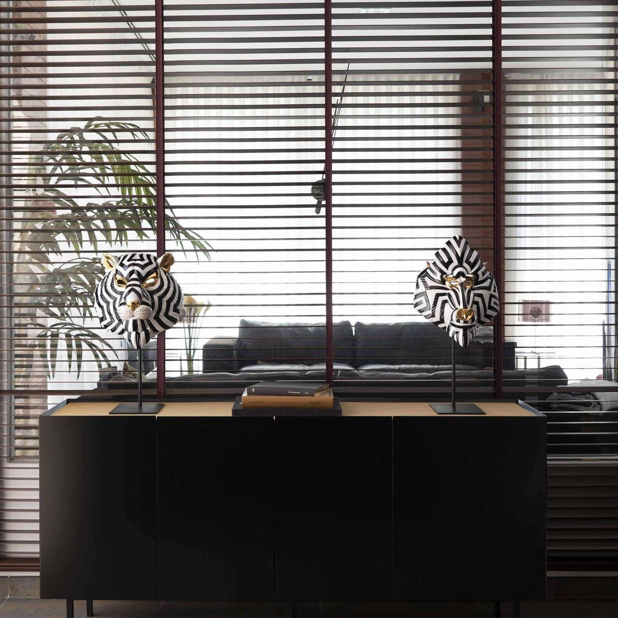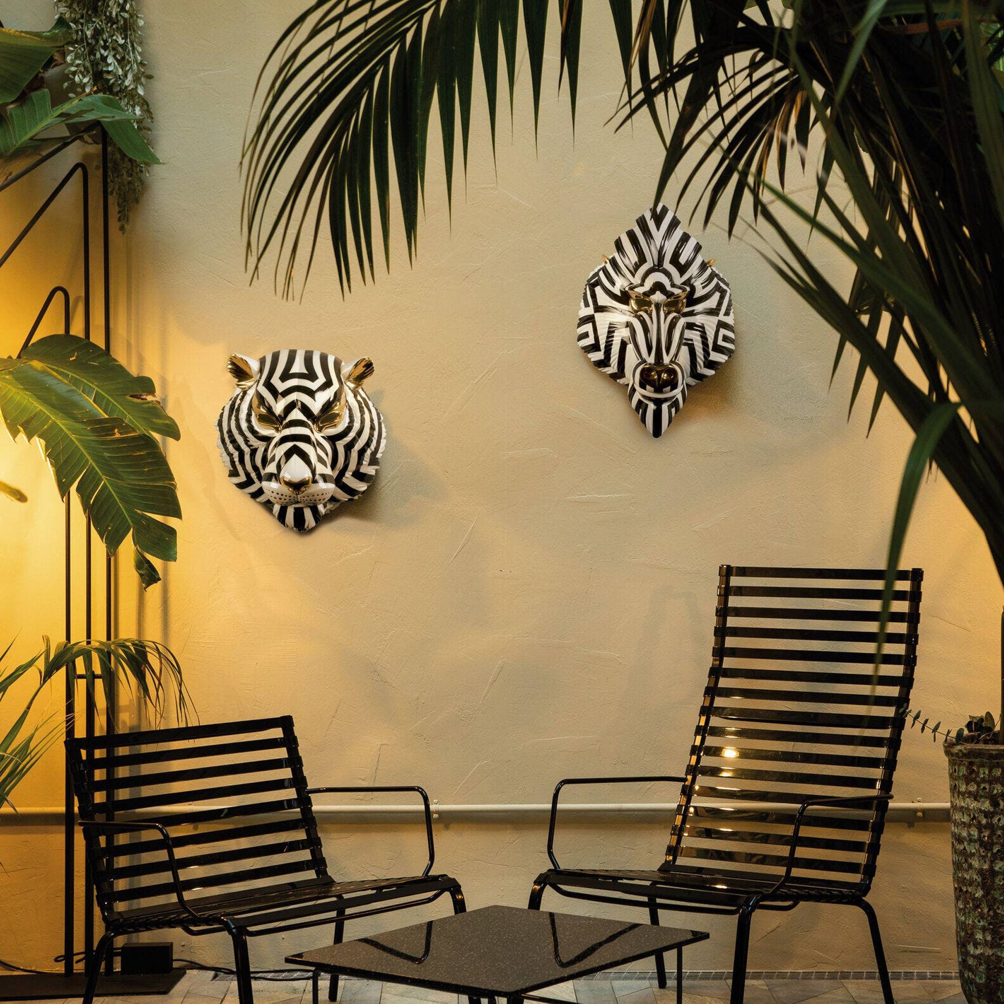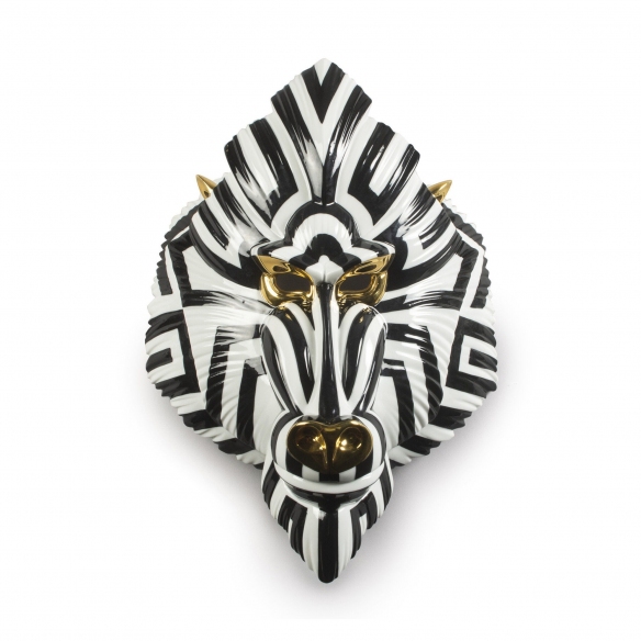 La maschera Mandrillo è un bellissimo esemplare di design che unisce eleganza, mistero e raffinatezza, realizzato da Lladró porcellana lucida e metallo rifinito in argento sterling placcato oro. Questa meravigliosa maschera Mandrillo trasmette una sensazione di maestosità e potenza, e il suo design audace e contemporaneo la rende abbinabile a qualsiasi ambiente e stile di arredamento: che sia posizionata in un salotto moderno o in un ufficio domestico dal design minimalista, questa maschera diverrà il punto focale delle conversazioni tra gli ospiti. Inoltre, il contrasto tra i due colori nero e oro aggiunge un livello più alto di mistero e profondità: il nero, intenso e cupo, dona alla maschera un tocco di segreto e oscurità; invece, i dettagli in oro illuminano la figura del mandrillo, simboleggiando così regalità e grandiosità. Questa maschera Mandrillo non è solo un oggetto decorativo per la casa, bensì una vera e propria opera d'arte che illumina qualsiasi spazio della tua casa. Disegnato da José Luis Santes per Lladró.