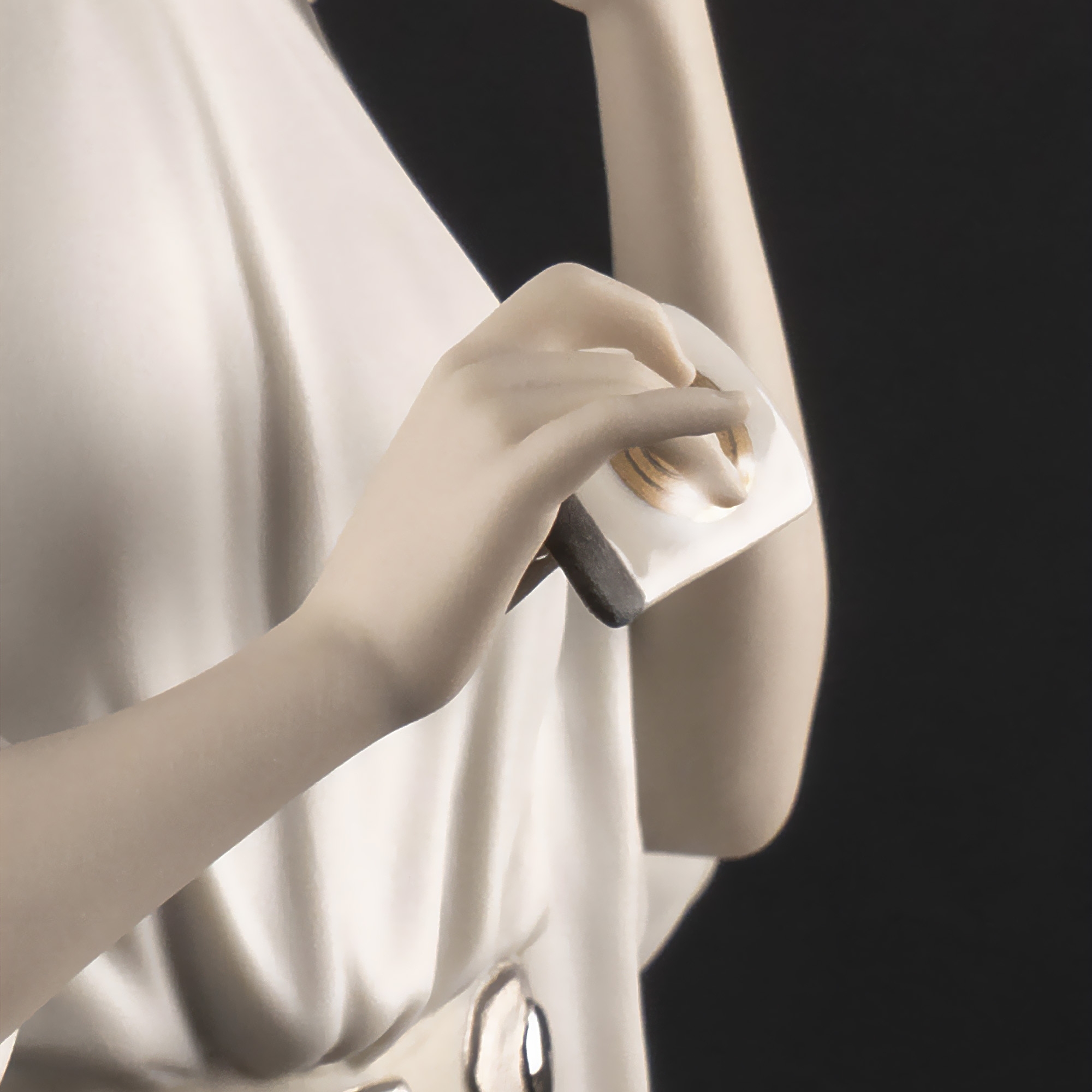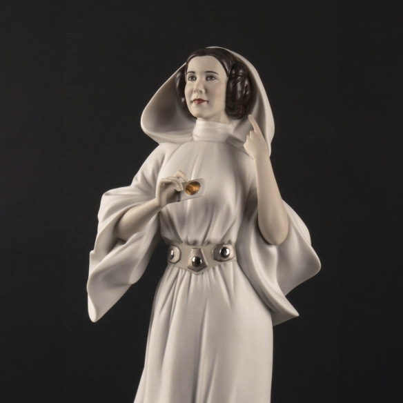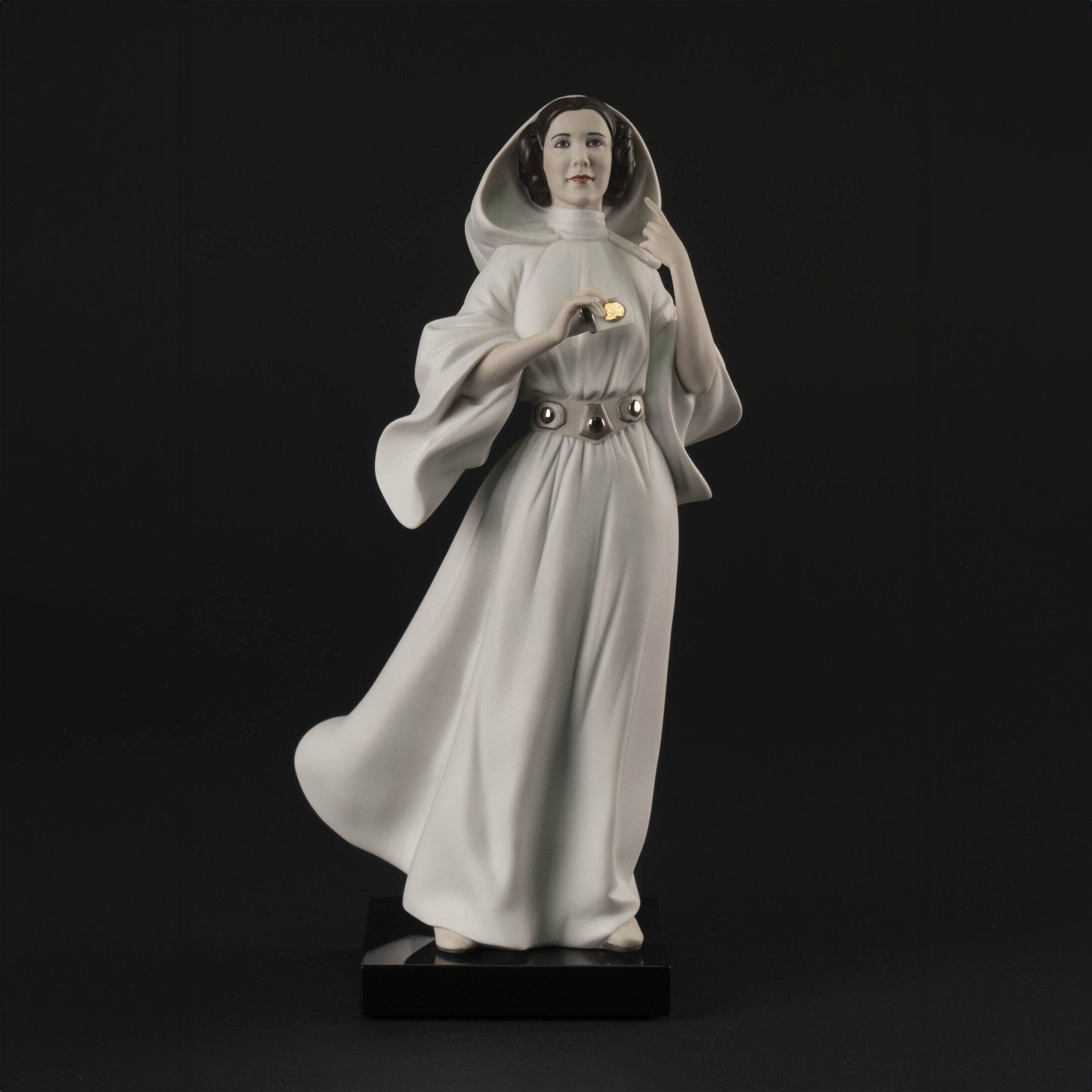 La figura di Princess Leia™'s new hope è una meravigliosa rappresentazione della star della saga di Star Wars™, realizzata interamente in porcellana opaca e dettagli colorati con finitura lucida in lustro oro e argento. La principessa Leia è uno dei più amati personaggi della saga, e la sua statuetta è basata su una scena particolare dell'Episodio IV - Una nuova speranza, dove Leila tiene il disco con i progetti della prima Morte Nera; la maestria degli artigiani colpisce per l'incredibile somiglianza con il personaggio e per le diverse tecniche decorative utilizzate, come per il volto, le espressioni e l'abbigliamento, che dimostrano come la porcellana sia perfetta per queste opere precise ed espressive. Questa statuetta è sia un tributo a un personaggio iconico che un pezzo di design straordinario in qualsiasi collezione d'arte cinematografica: perfetta da esporre in una libreria, in casa, in ufficio o in uno spazio abitativo, catturando l'attenzione dei fan di Star Wars e degli amanti del design e diventando un vero e proprio punto focale dell'ambiente in cui è posizionato. Scultore: Eva María Cuerva.